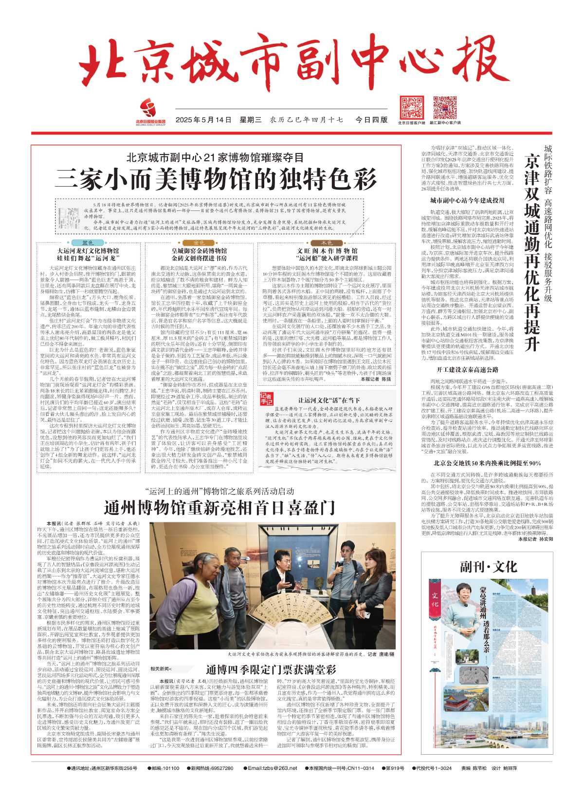 5月18日将迎来世界博物馆日。北京城市副中心报记者翻阅《2025年北京博物馆通票》时发现,北京城市副中心所在地通州有11家特色博物馆被收录其中。事实上,这只是通州博物馆集群的一部分——目前整个通州已有博物馆、类博物馆21家,除了国有博物馆,还有大量民办博物馆。详情>>