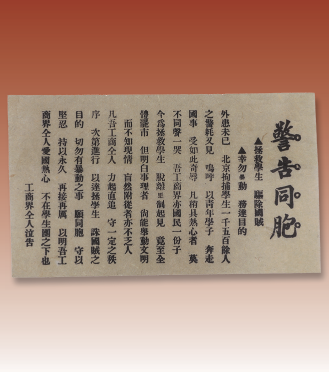 1919年5月14日,上海《申报》报道上海颜料、花纱、煤炭等行业为声援五四运动开始组织抵制日货、停止与日商交易等活动。同日,北京中等以上学校学生联合会在《致各省各团体电》中指出:“‘五四运动’是为敌忾心之激发,亦即我四千年光荣之民族性之表见”。这是“五四运动”一词首次被使用。