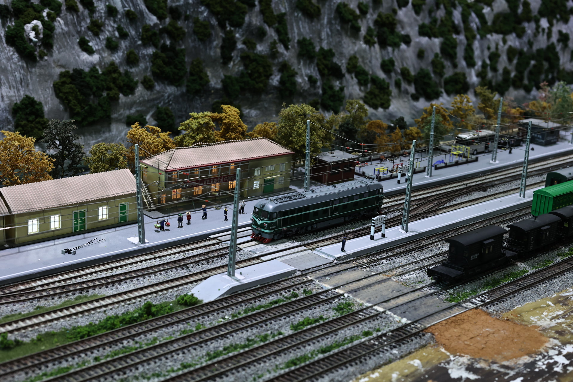 随后,制作团队在底板的泡沫垫板上切割出车站、河流、山体的轮廓;再搭建出山体的大致形状,随即抹上石膏,经过切割、上色,使得山体看起来与实景相似;最后还需要一块块地粘上灌木丛。制作车站区域时,王梓晨带领团队一条一条拼接铁轨,车站的房屋、外墙,站外的大桥、桥墩等,也都是按照实景以3D打印的方式打造而成;再安装上旅客、树木、站牌等,整个沙盘就算基本成型了。
