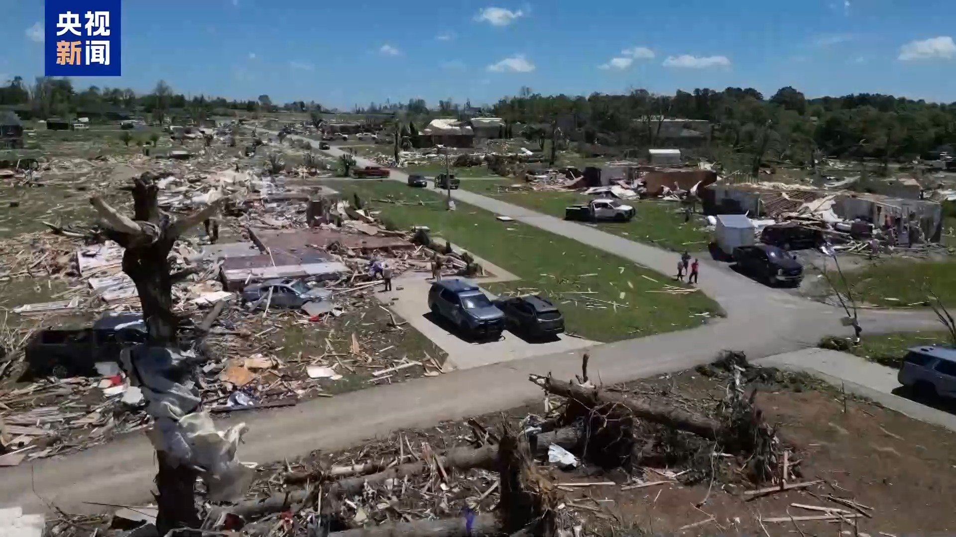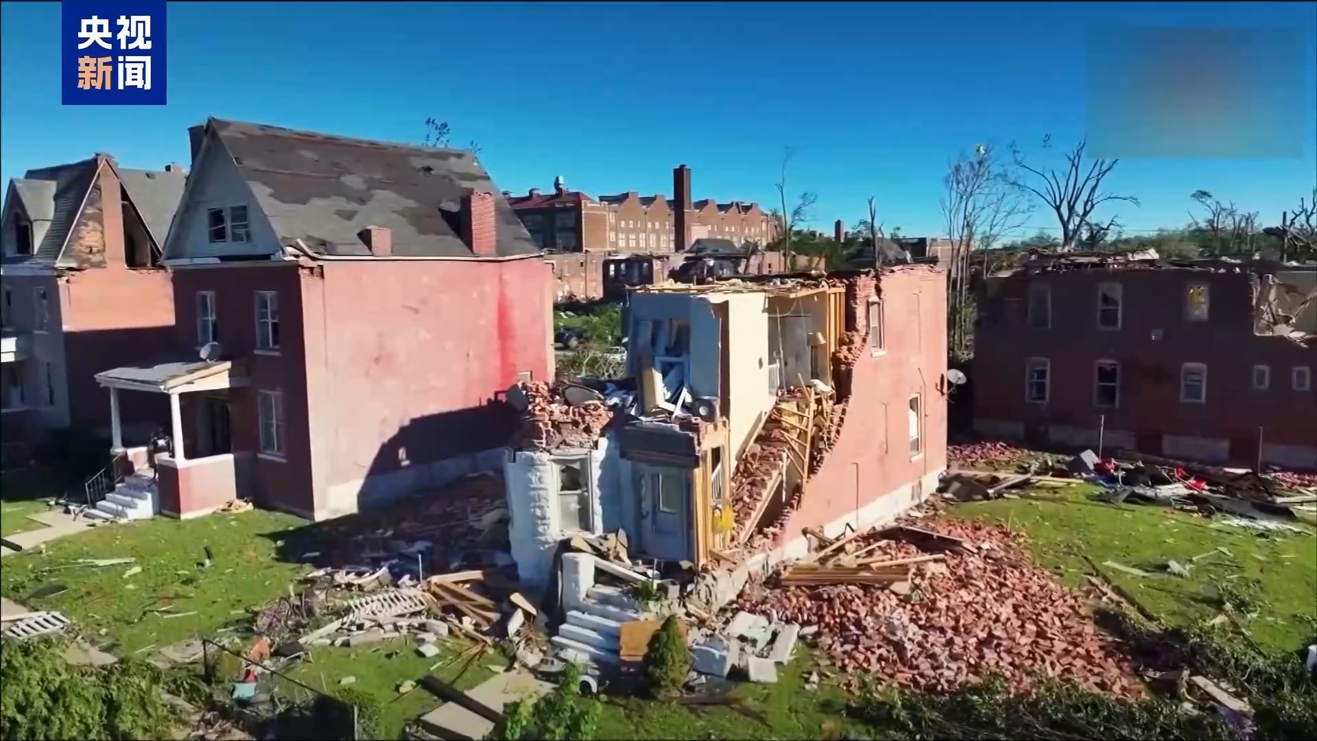 在肯塔基州受影响地区,强风暴过后,当地街区房屋几乎无一完好。