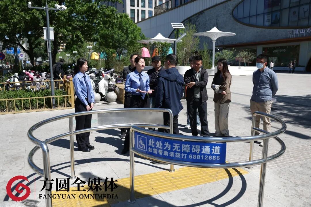 ▲北京市石景山区检察院检察官与相关职能部门工作人员共同查看无障碍通道建设情况。