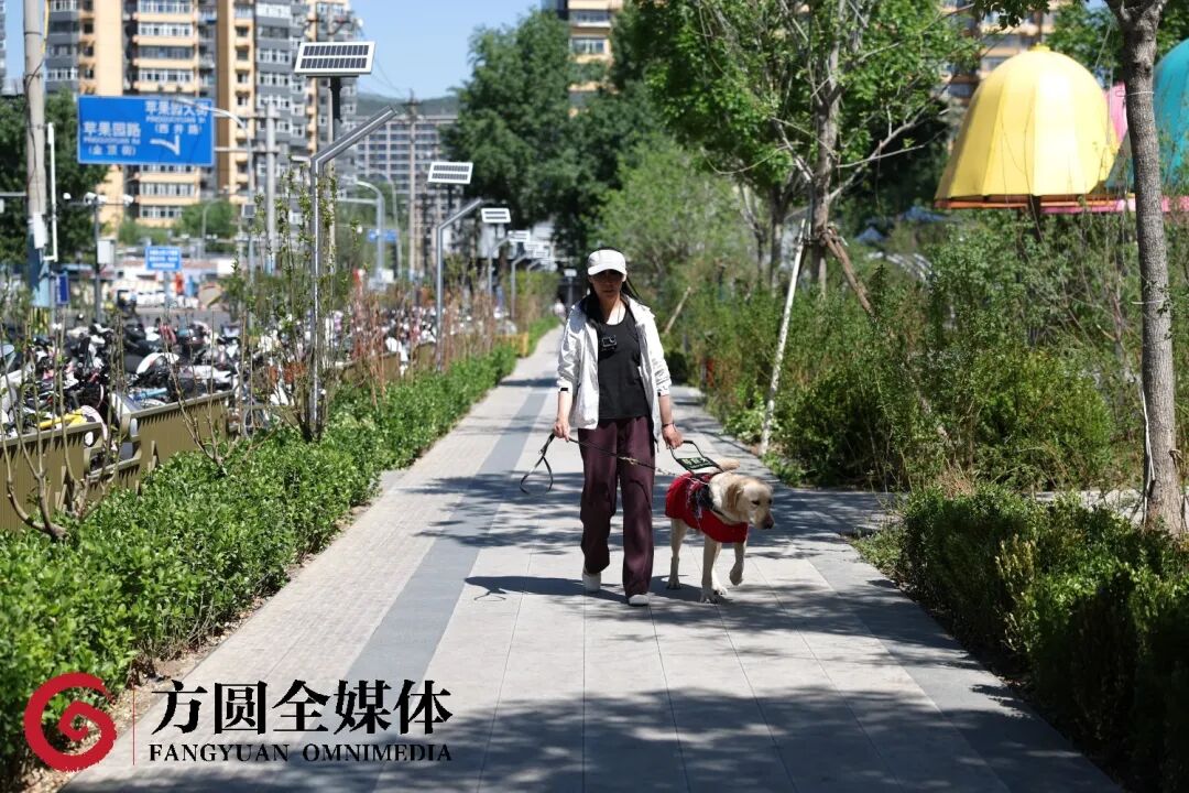 ▲虽然平时有导盲犬“前锋”引导张女士出行,但在面对没有安装过街音响提示的苹果园大街十字路口时,安全地通过人行横道依旧成为了困扰张女士日常出行的难题。