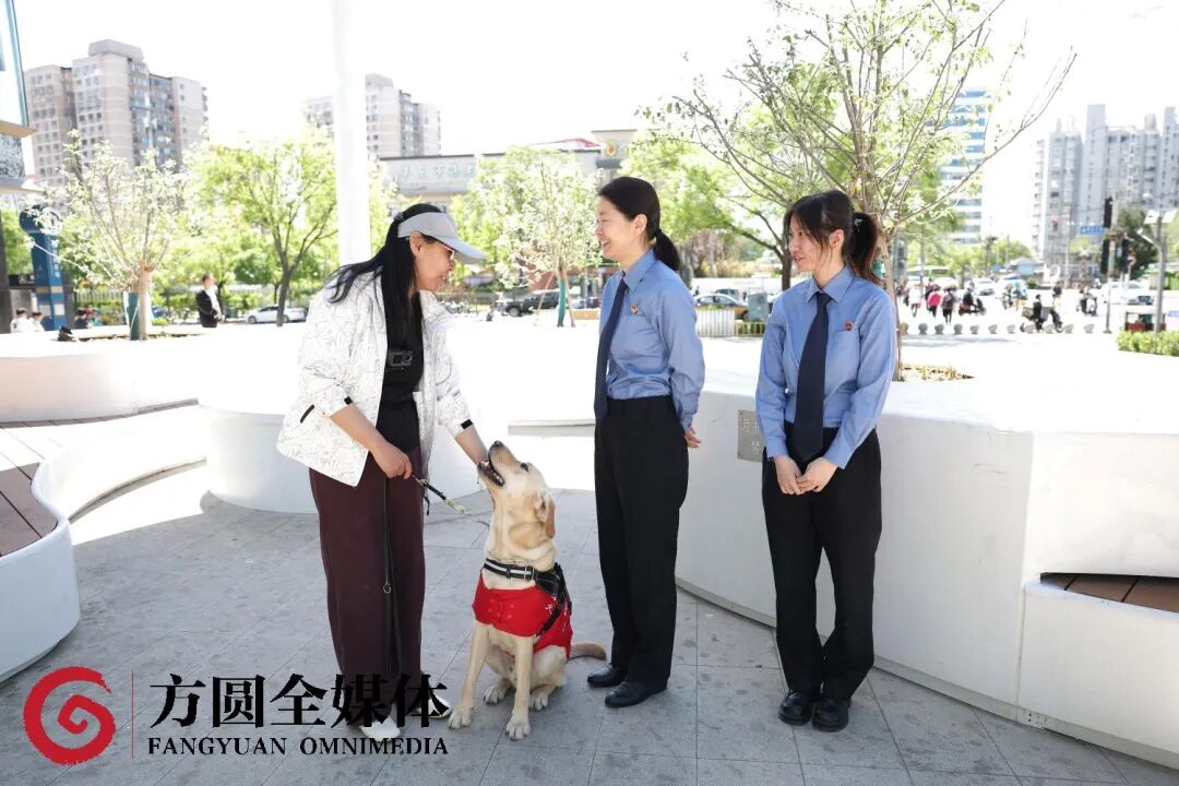 2025年1月6日下午,办案人员邀请张女士、石景山区残联工作人员、相关行政机关工作人员对涉案点位整改效果进行验收,张女士带着导盲犬亲自体验了路口的过街音响装置,在过街音响装置的提示下,安全通过了人行横道。