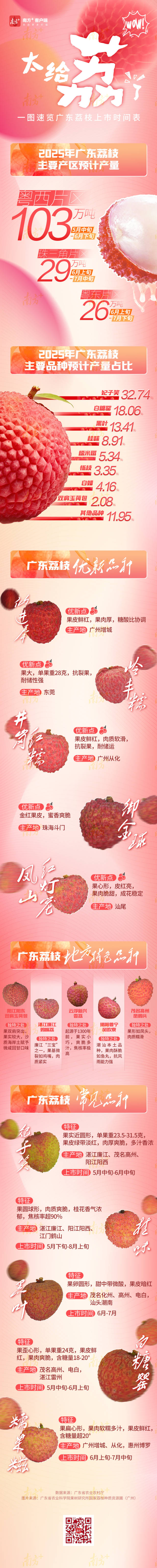 广东哪个地方最盛产荔枝?不同品种的荔枝都什么时候上市?今年又有哪些值得关注的荔枝新品种?一图带你速览↓↓