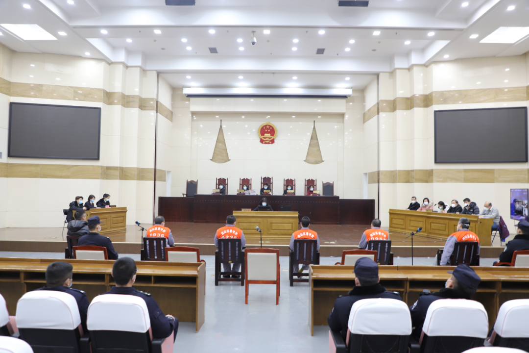 图为张某某等人污染环境刑事附带民事公益诉讼案庭审现场