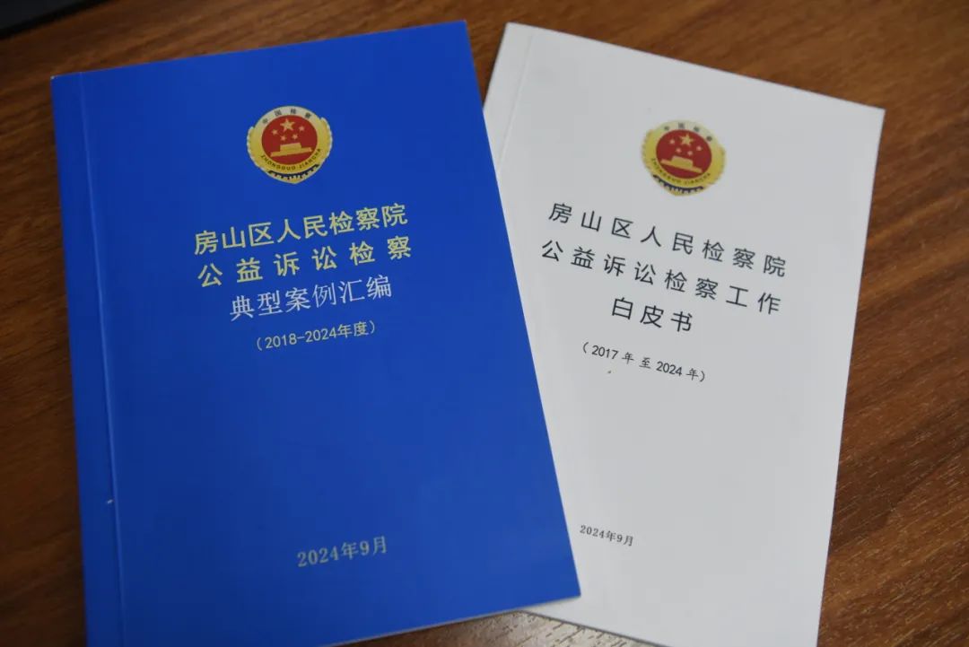 图为房山区公益诉讼生态修复暨法治教育基地启动仪式发布《房山区人民检察院公益诉讼检察工作白皮书(2017-2024)》和《典型案例汇编》