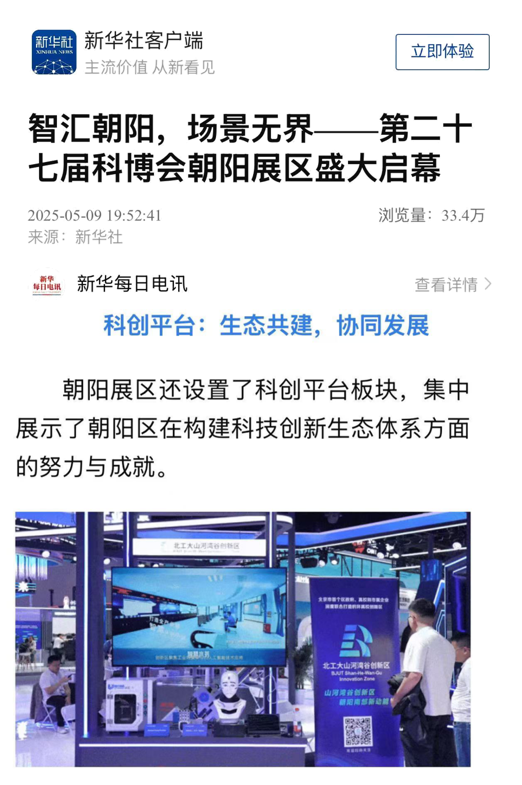 新华社:《智汇朝阳,场景无界——第二十七届科博会朝阳展区盛大启幕》