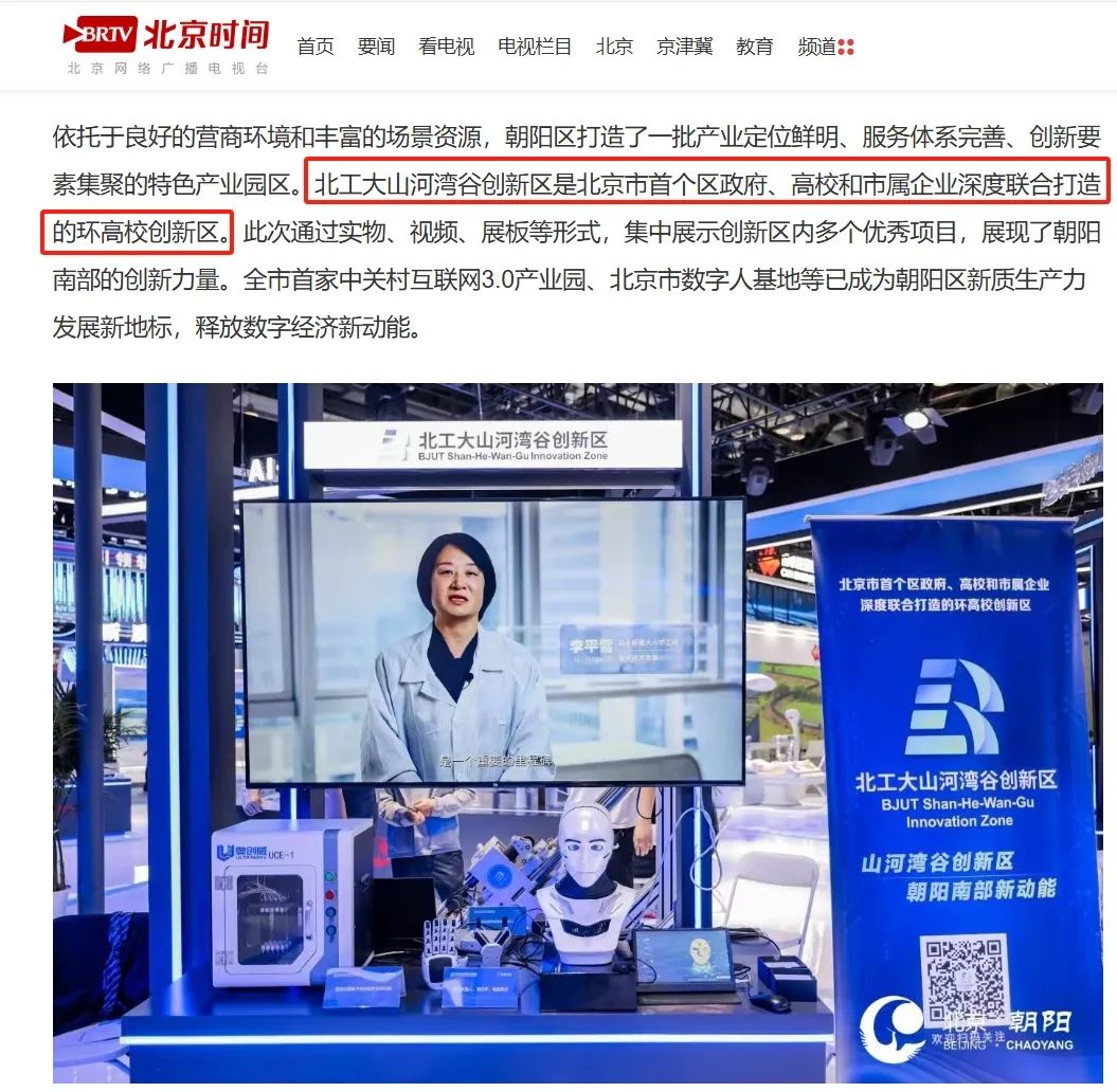 作为朝阳区南部科技园区代表,北工大山河湾谷创新区选送三项有特色的高科技成果亮相科博会。