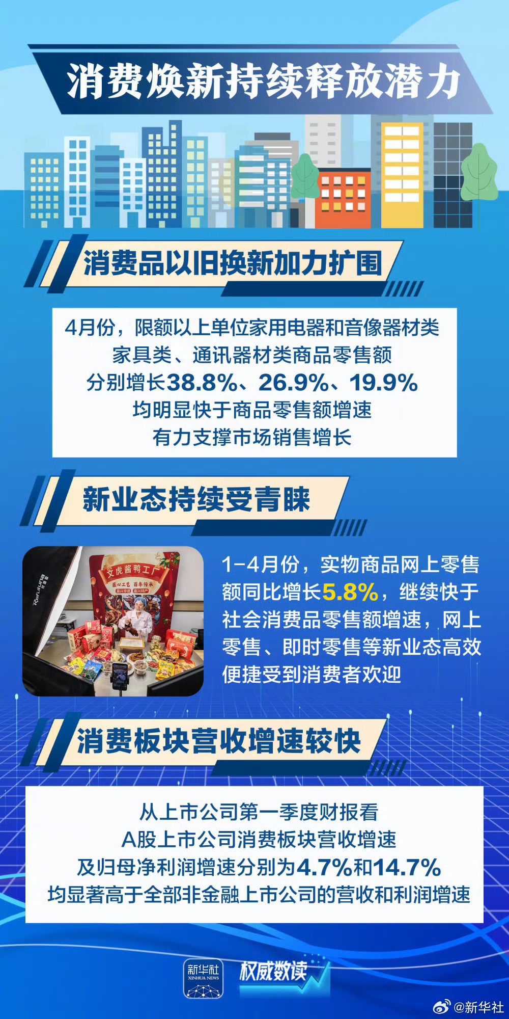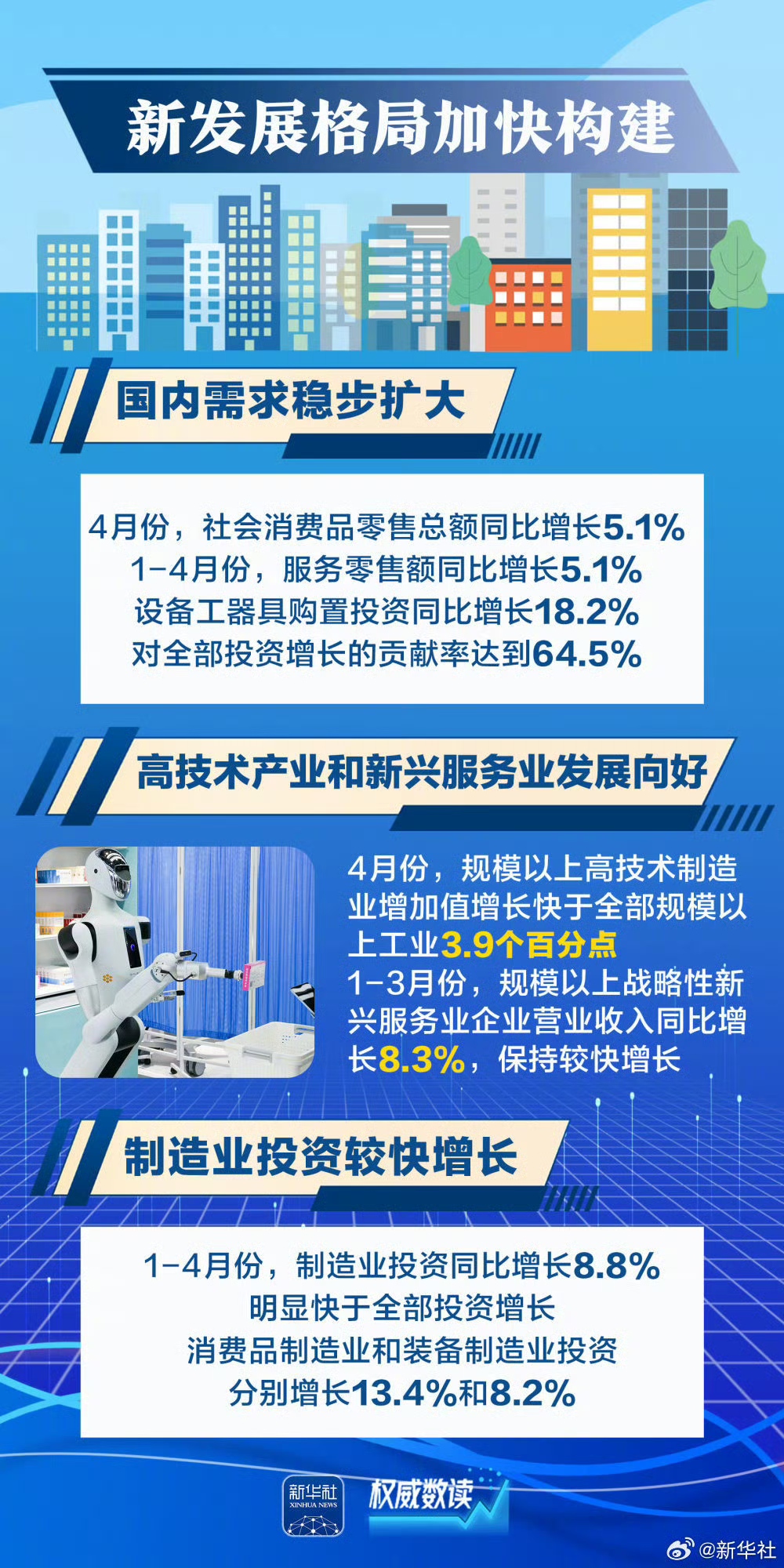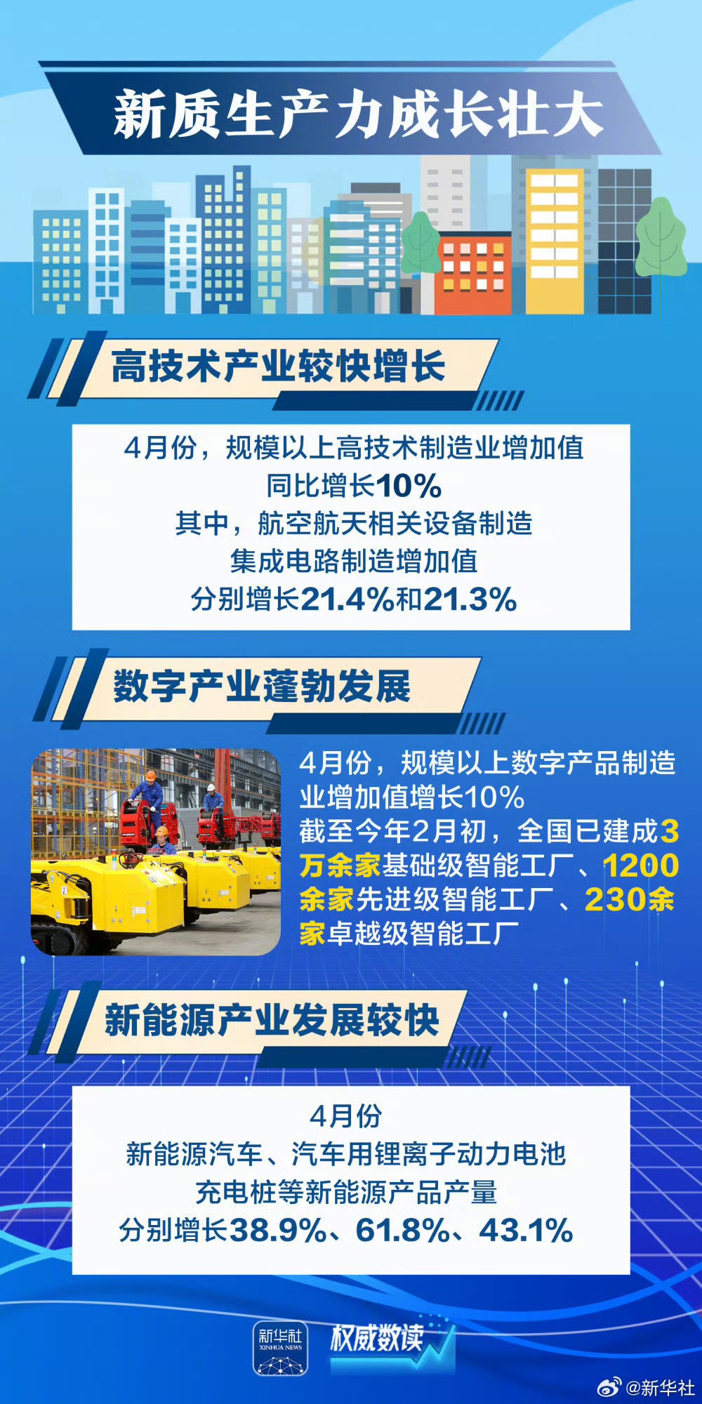 4月份经济数据陆续出炉,中国经济顶住压力稳定增长,延续向新向好发展态势。新质生产力成长壮大、新发展格局加速构建、消费“焕新”持续释放潜力、中国市场“新意”拉满吸引全球……跟随这几组数据,一起感受中国经济“含新量”。