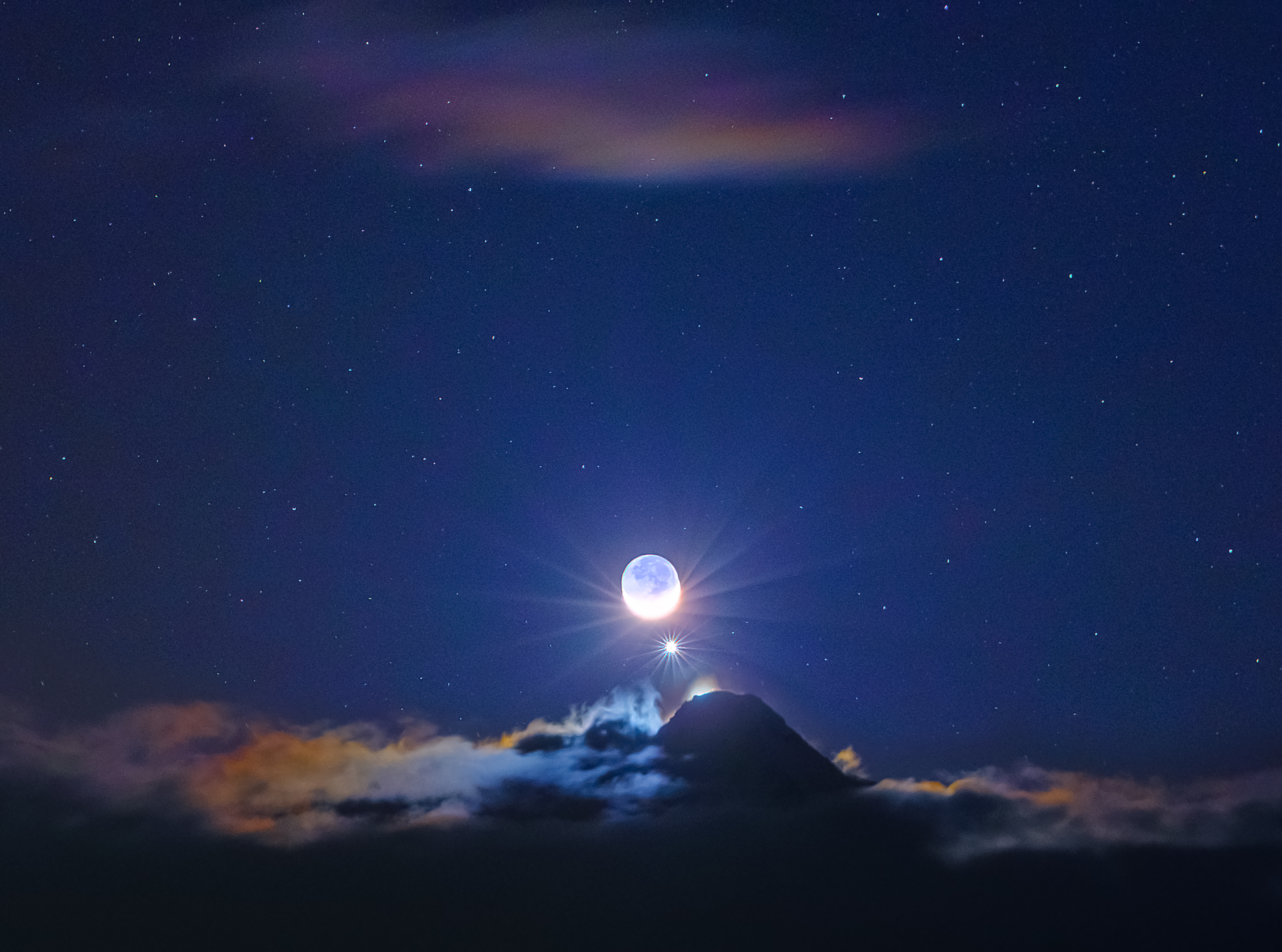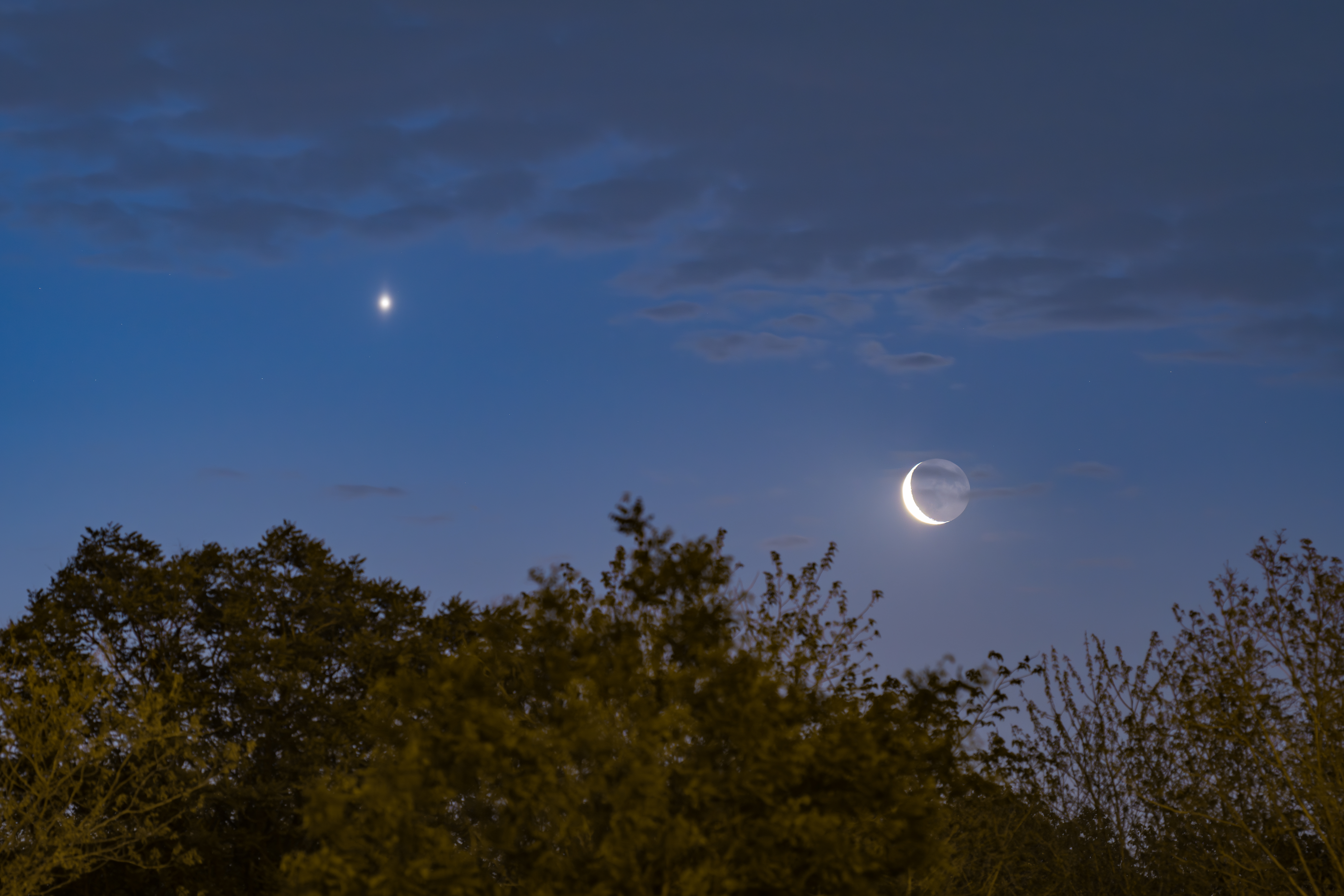 “由于金星环绕太阳的轨道位于地球轨道的内侧,它总是会出现在日出之前或者日落之后,因此,我们能够看到金星的时间只能是黎明或傍晚。月球与之相伴时,月相要么是农历月初的蛾眉月,要么就是农历月末的残月,亮度均不高。弯弯的月牙和明亮的金星很‘般配’,无论是拍摄还是目视,都极具观赏价值。”杨婧说。