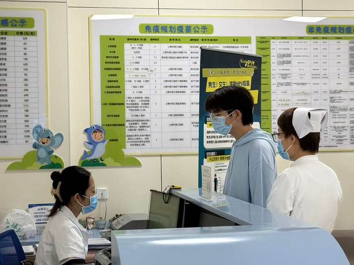 5月20日,23岁的王先生在北京市海淀区紫竹院社区卫生服务中心接种了九价HPV疫苗。记者了解到,目前北京适龄男性接种九价HPV疫苗的工作已全面开展,市民可通过“首都疫苗服务App”预约,也可选择就近的社区卫生服务中心咨询接种。