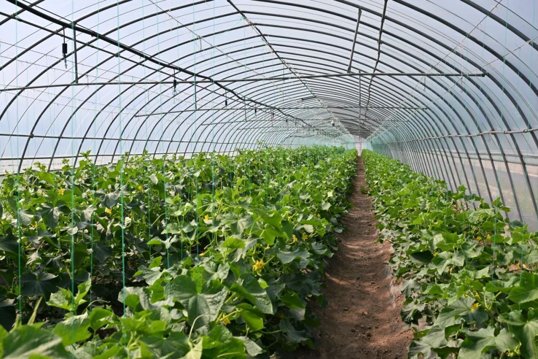 清晨,位于于家务回族乡的通农绿色农场智慧大棚里,技术员王师傅正通过手机APP查看大棚数据。随着他轻触屏幕,顶棚的通风口缓缓开启,阳光透过智能调光膜洒在翠绿的黄瓜藤上。“现在室温28℃,湿度65%,系统会自动喷淋降温。”他指着屏幕上跳动的数据说。