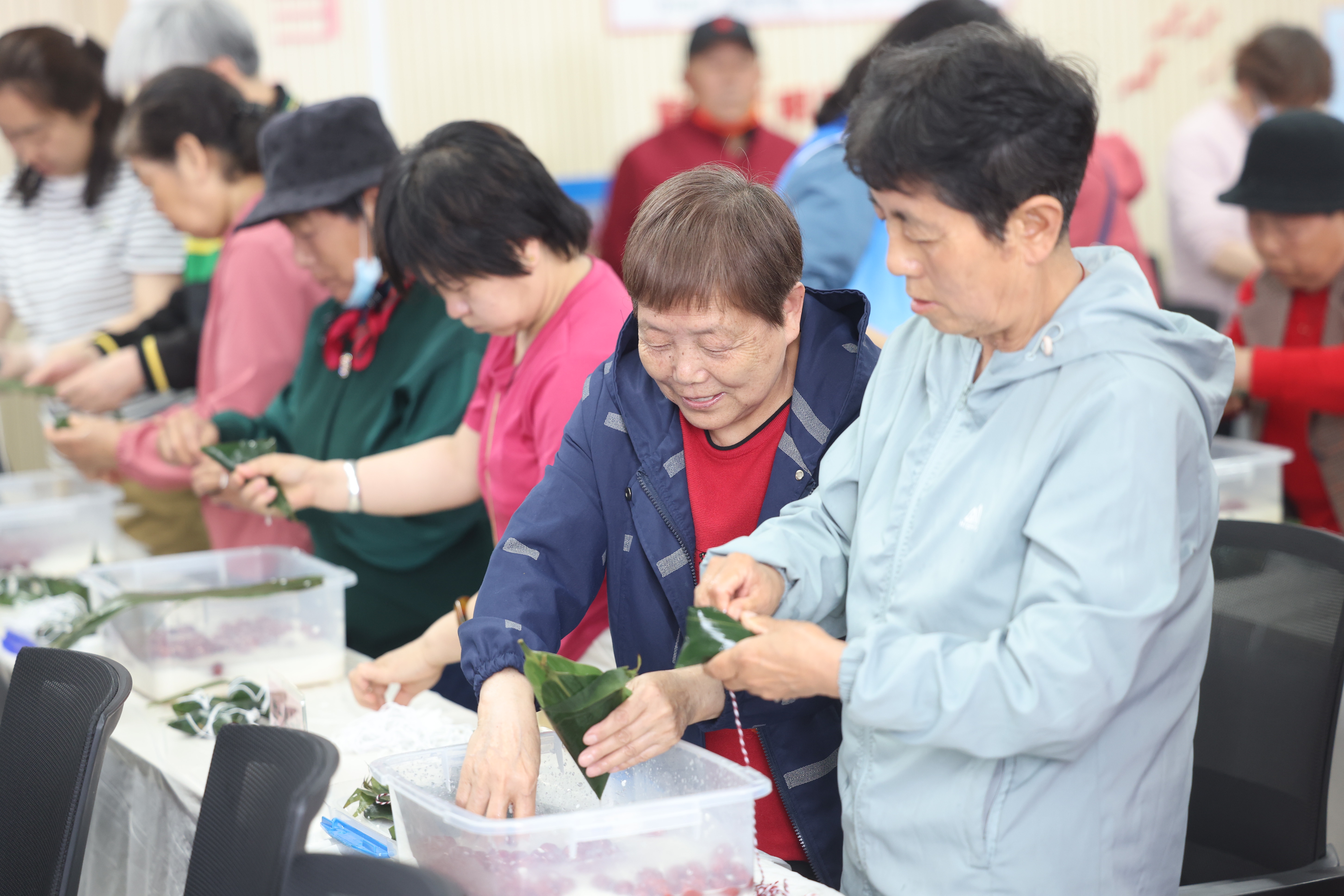 对于行动不便、无法独立完成包粽子的残疾人,志愿者们主动协助,全程陪伴,确保每个人都能参与其中,享受动手的乐趣。