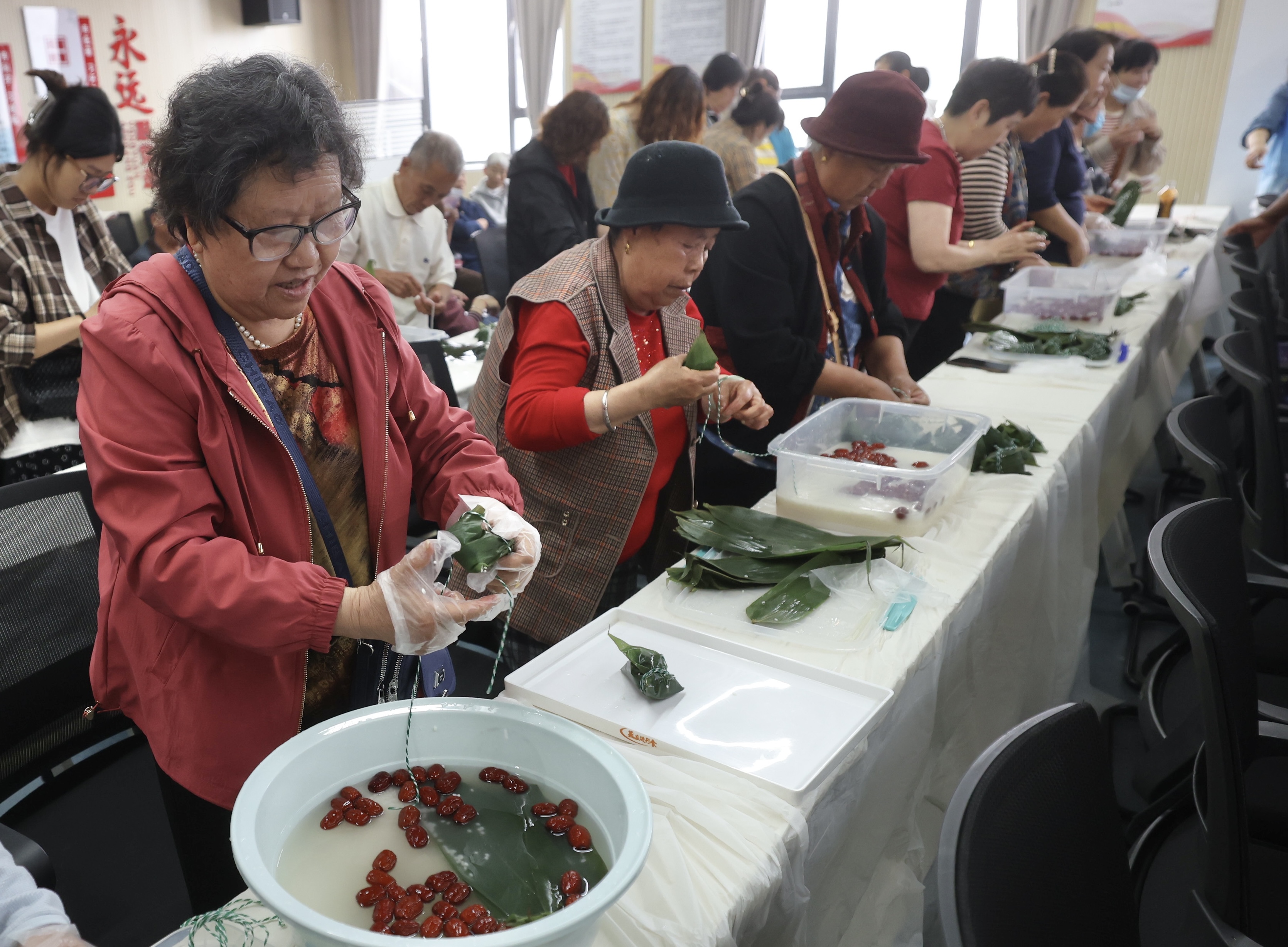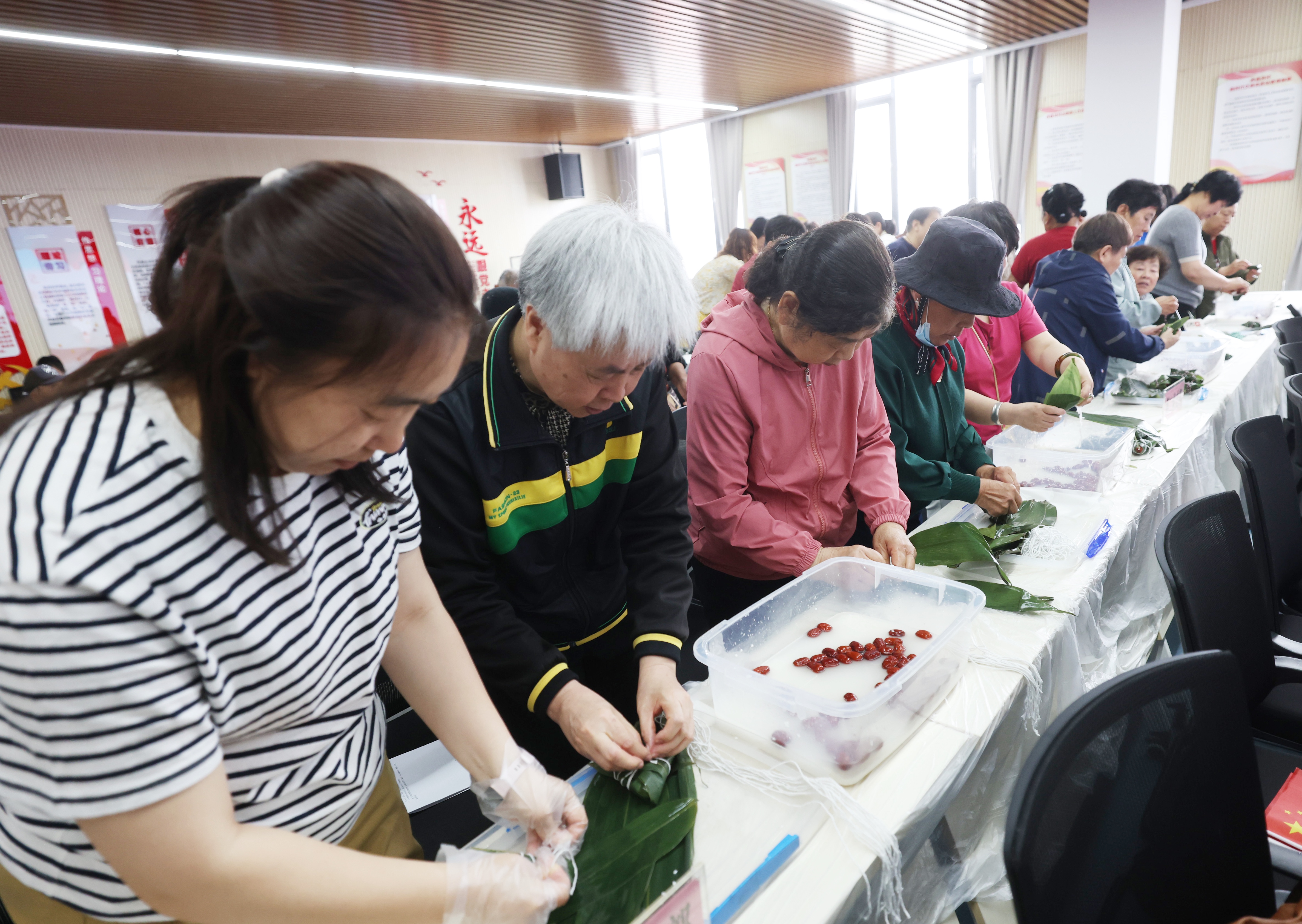 5月22日,由朝阳区十八里店乡西直河村残疾人温馨家园联合西直河村党群服务中心举办的“粽叶飘香迎端午,党群共建心连心”包粽子活动在西直河村党群服务中心举办,辖区的残疾人和党员志愿者以粽寄情,喜迎端午佳节的到来。