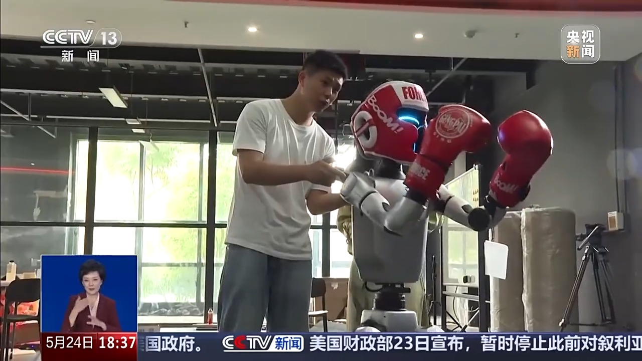 人形机器人之间比赛格斗,会有怎样的精彩?直拳勾拳,踢腿防守,灵活平衡是重要指标,勾勾手,转个身,一套丝滑小连招。击打对抗、战术闪避,机器人选手武功高。