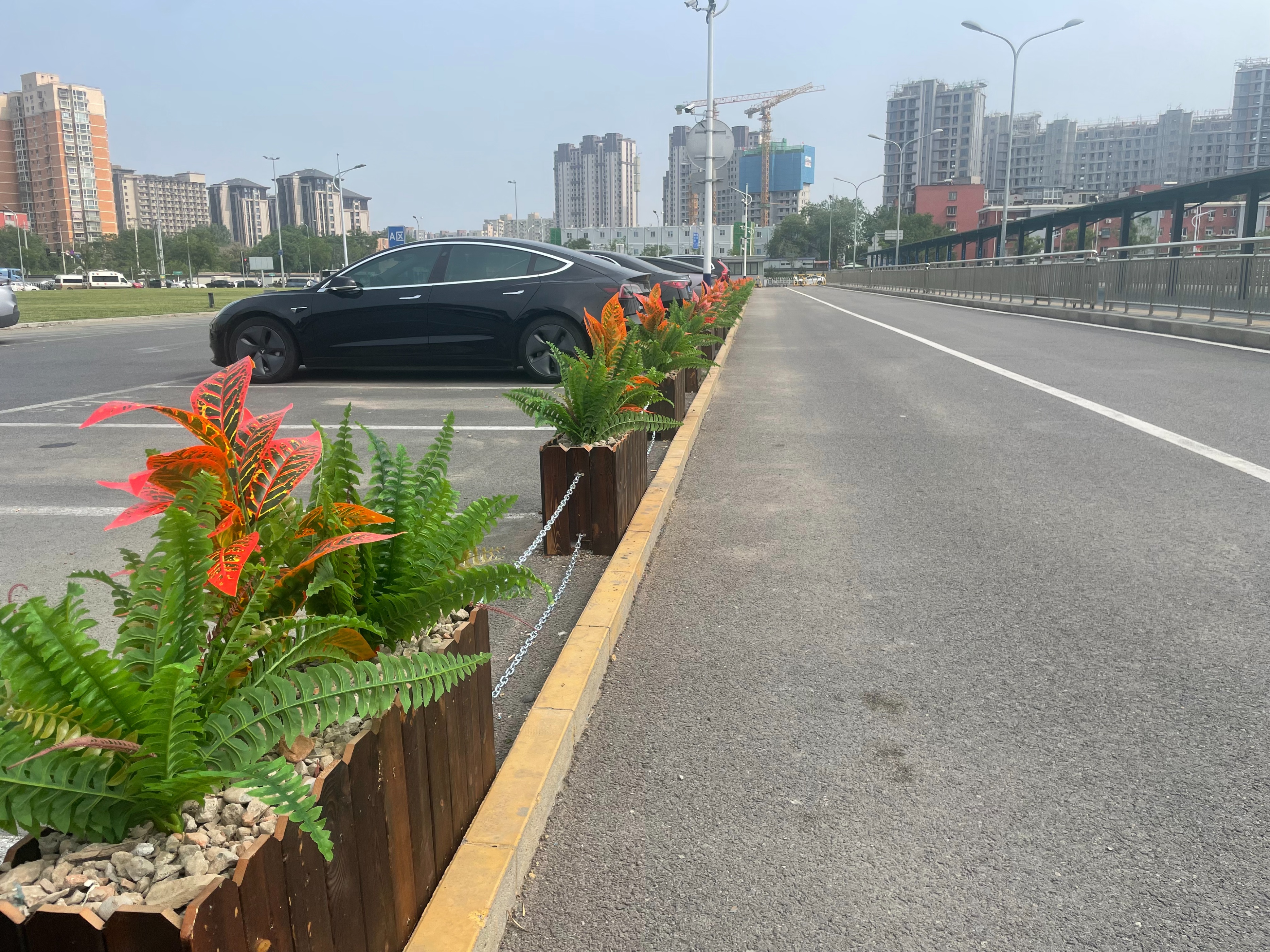 盛夏繁花正盛时,北京丰台站地区管理办公室匠心巧思,将站前P2停车场的白色栏杆升级为立体花坛长廊。错落有致的花箱组成“彩色卫士”,既分隔空间又自成风景,让旅客瞬间被鲜花环抱。