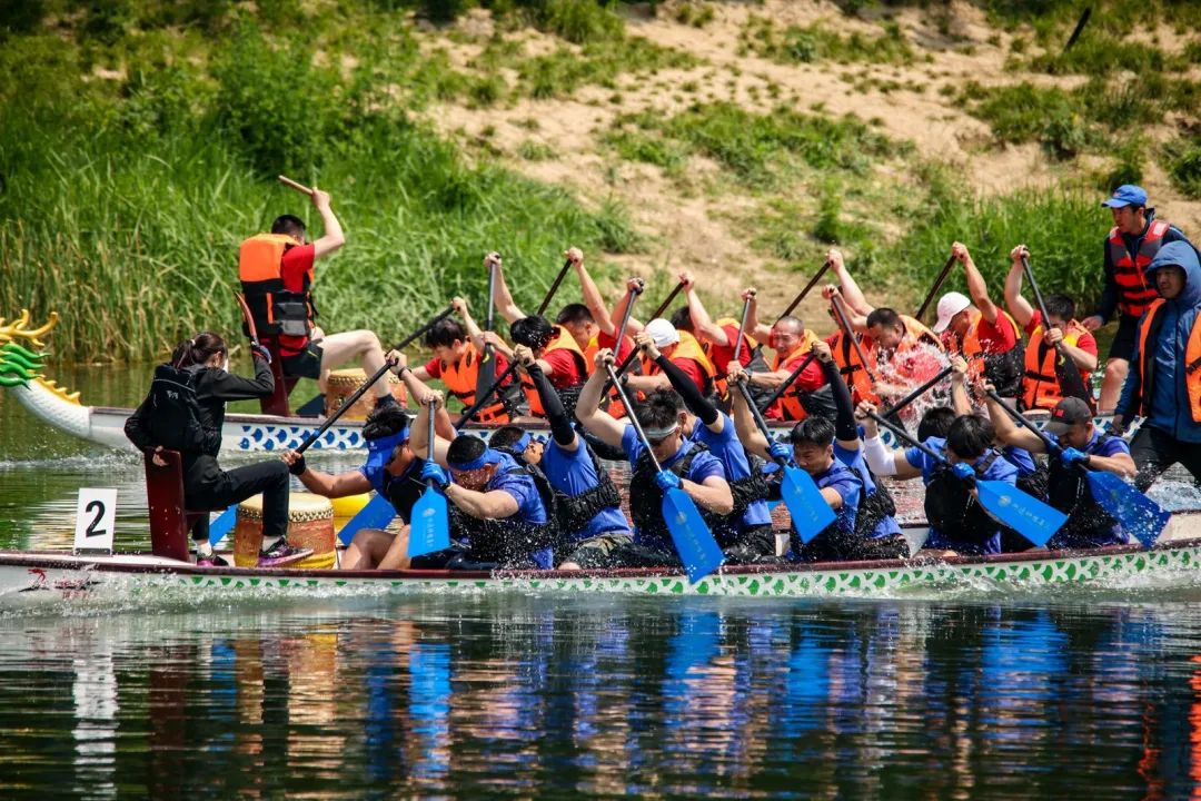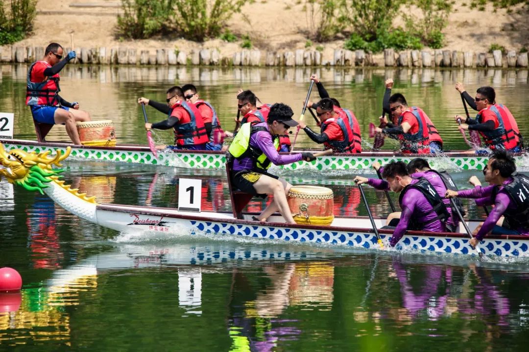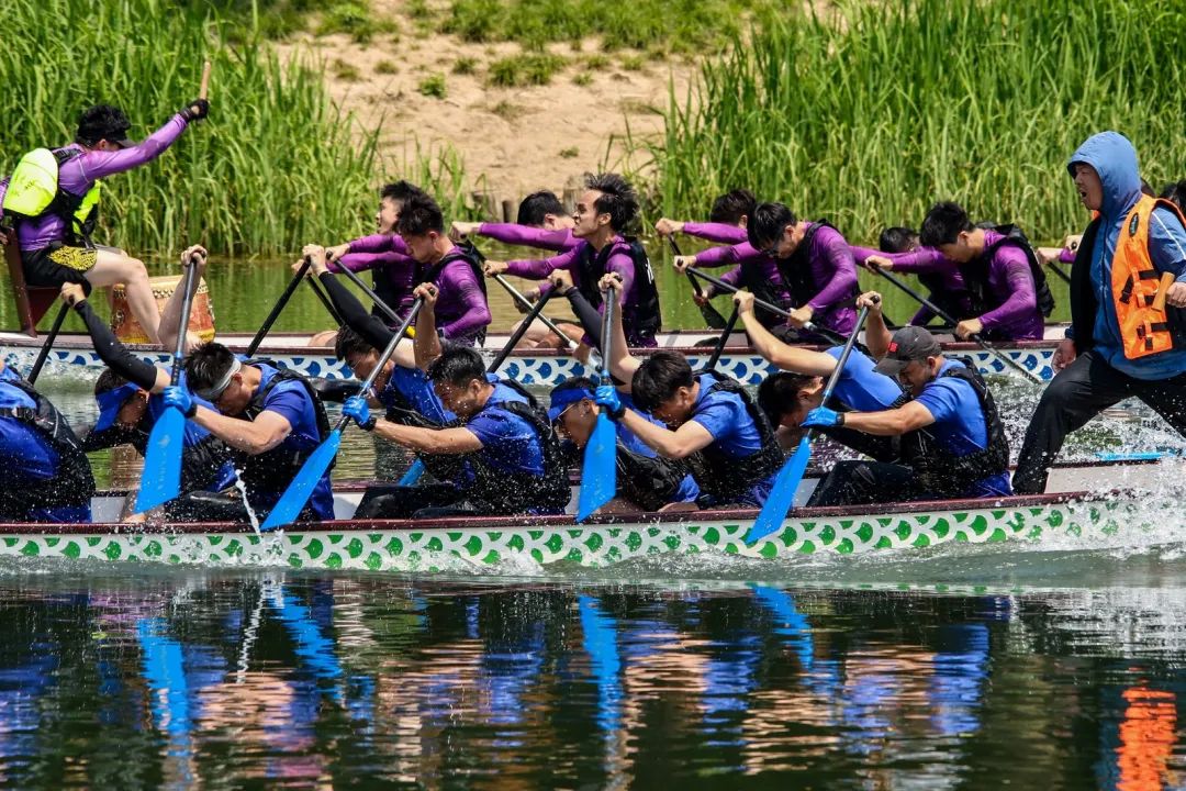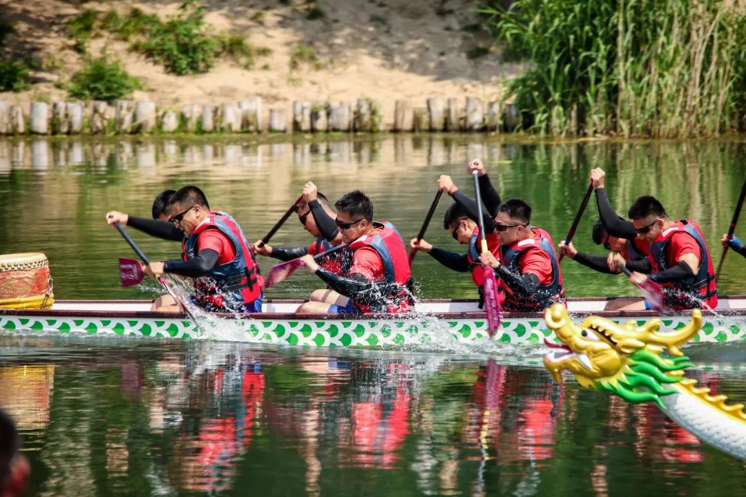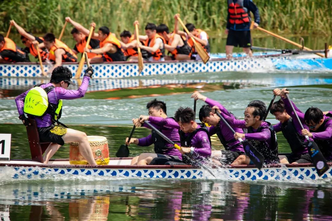一艘艘龙舟似离弦之箭,破浪前行,竞相争先