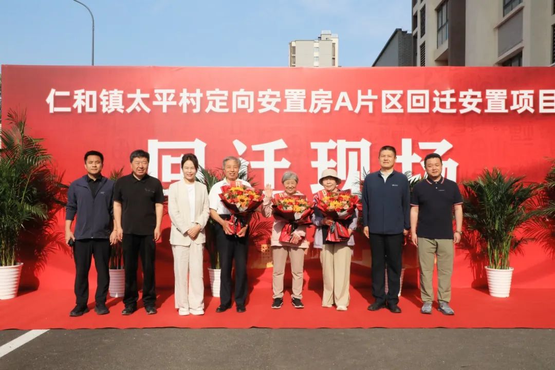 仁和地区党委书记申志红代表仁和地区党委、镇政府向前三位选房村民赠送鲜花并表示祝贺。