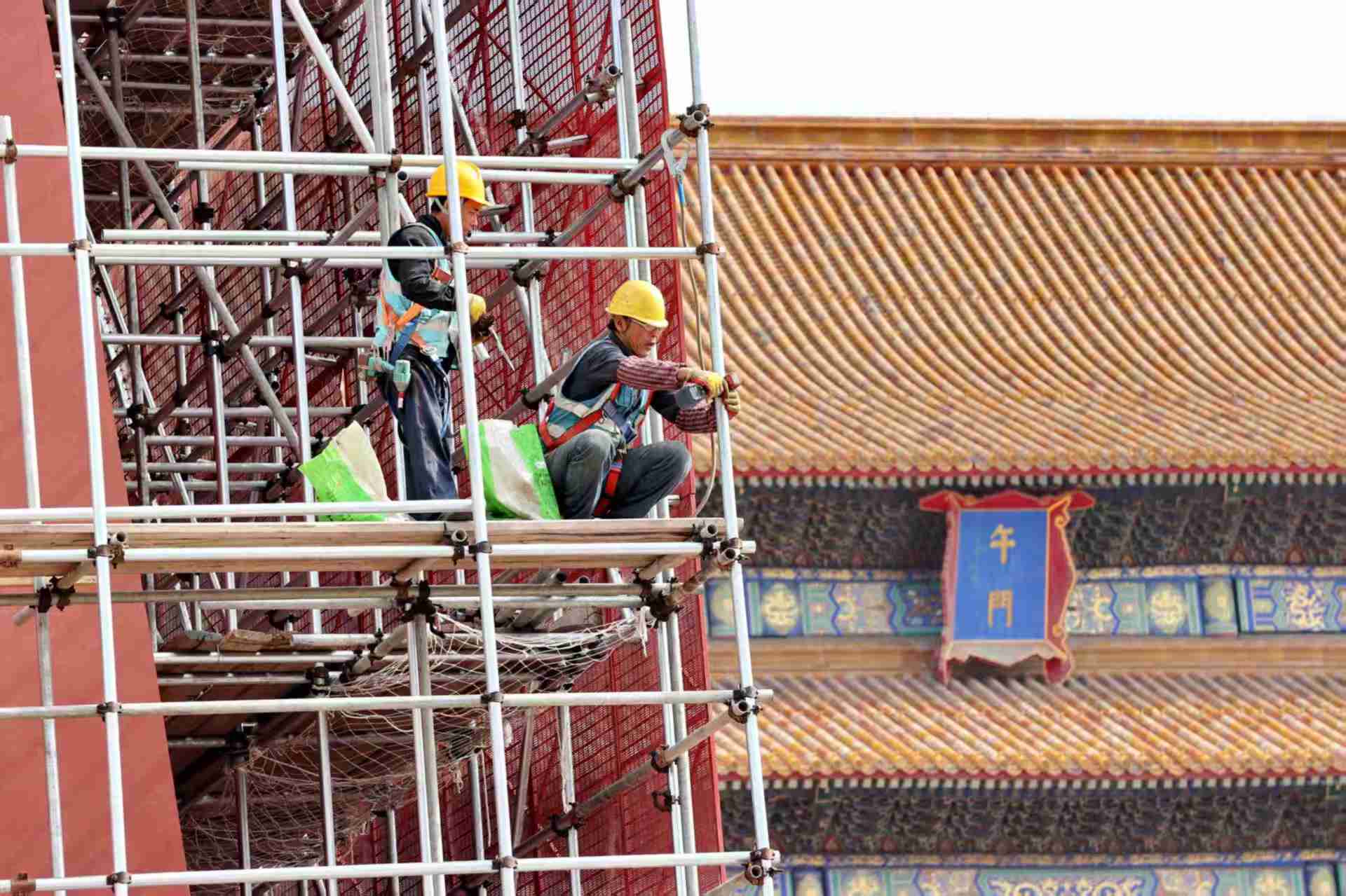故宫午门搭建脚手架修缮古建