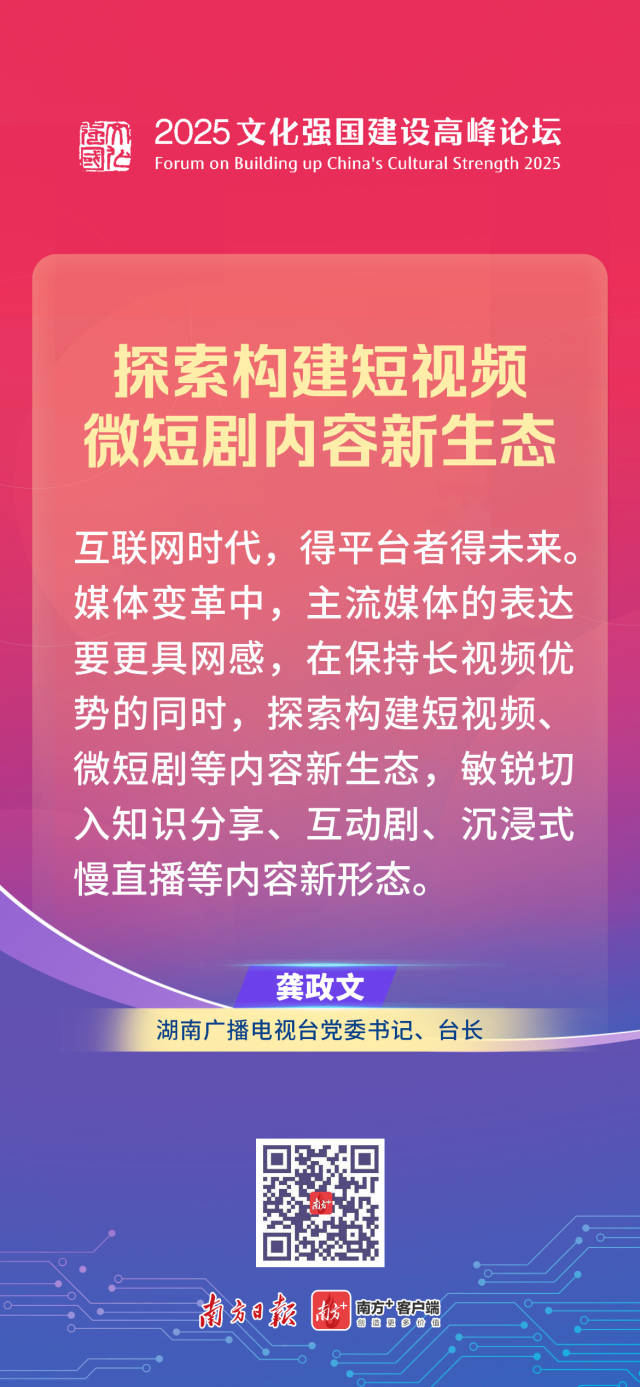 他表示,互联网时代,得平台者得未来。媒体变革中,主流媒体的表达要更具网感,在保持长视频优势的同时,探索构建短视频、微短剧等新型内容生态。