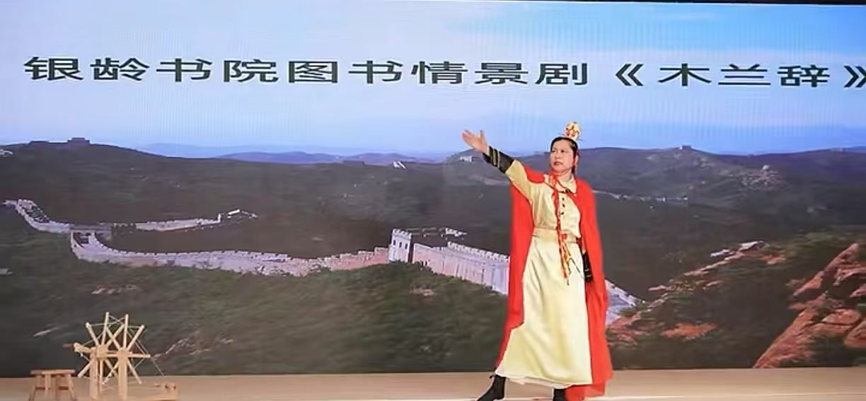 银龄书院银龄人艺术团《木兰辞》剧组,参加在山西太原举办的第四届全民阅读大会银龄阅读论坛,表演图书情景剧《木兰辞》。《木兰辞》演出道具由薛老师从北京快递到太原。