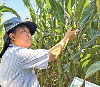 刘景圣在田间查看玉米长势。图片吉林农业大学提供