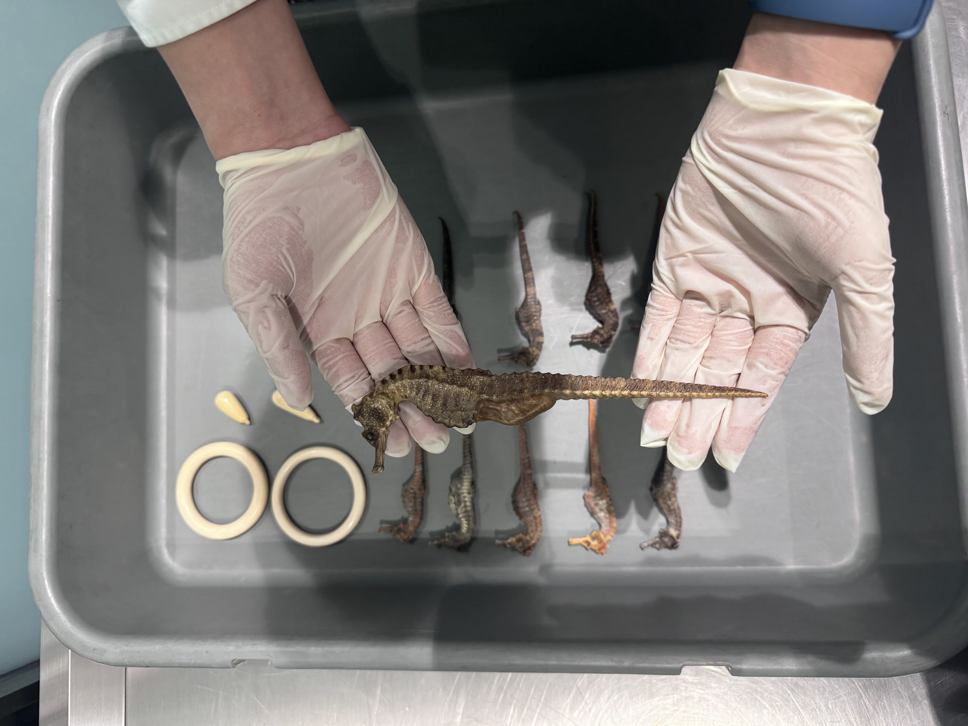 据介绍,大兴机场海关近日在对入境旅客行李进行监管时,发现一名选择无申报通道通关的旅客行李机检图像异常。经开箱查验,现场关员在该旅客行李箱内查获象牙制品4件、净重114克,干海马制品10尾、净重56克。