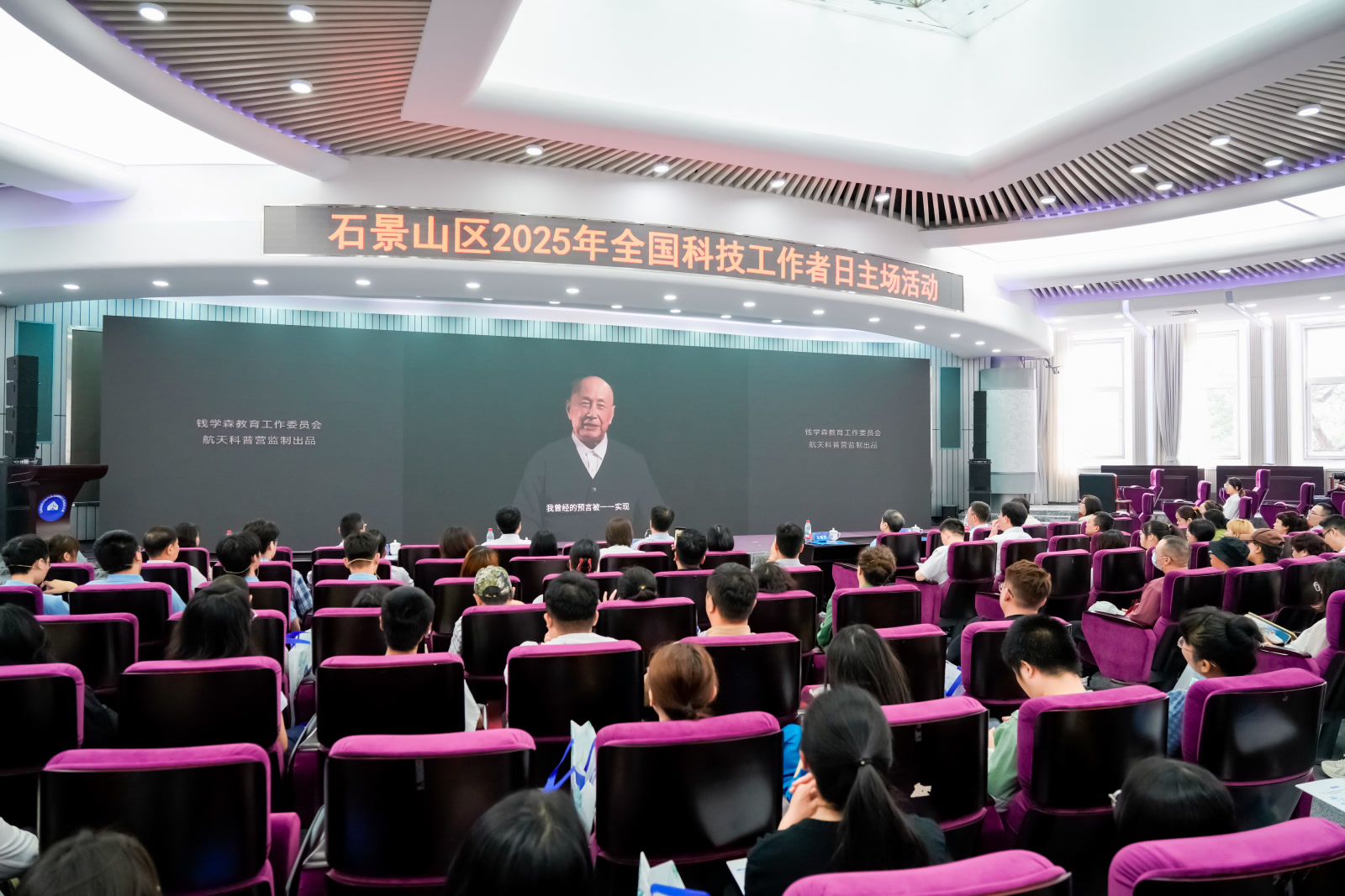 当钱学森先生的数字人影像在光影中重现,那双饱含殷切的眼眸仿佛穿透历史长河,与今日科技工作者的目光交汇。“科学没有国界,但科学家有祖国。”这句话,如一簇永不熄灭的火种,点燃了全场炽热的家国情怀。