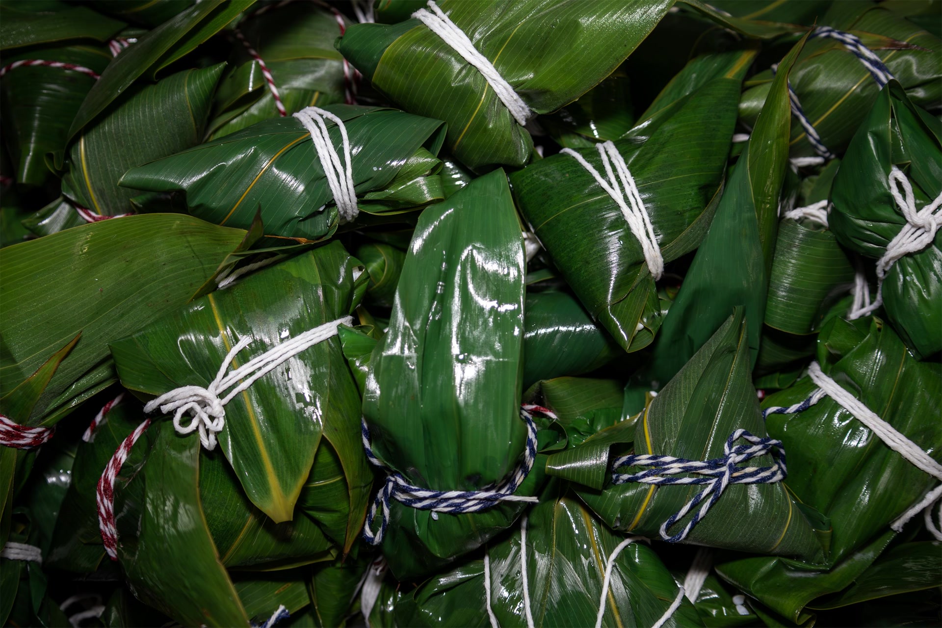 “粽叶卷成漏斗形,糯米中间放好馅料,一定要用筷子压紧压实。”炊事员向大家详细介绍包粽子的步骤和细节,大家一边包粽子,一边拉家常,沉浸在欢声笑语中。