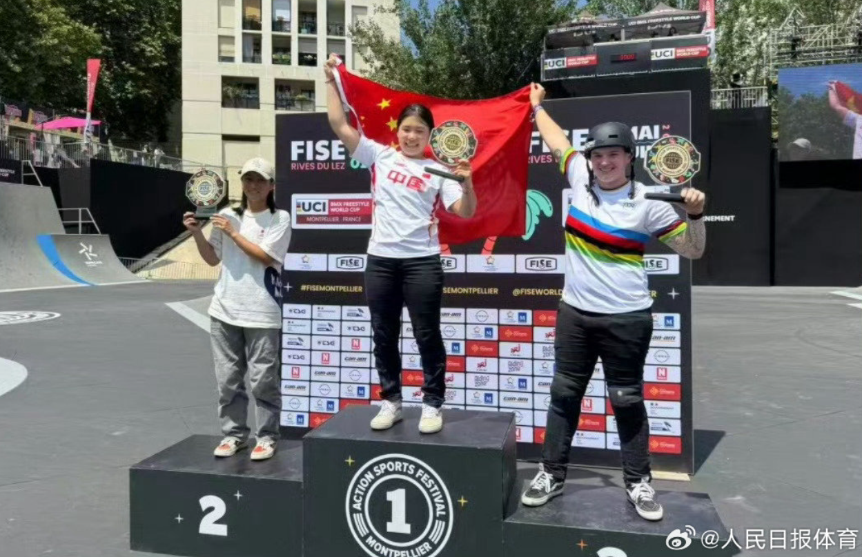 自由式小轮车世界杯法国站女子决赛当地时间5月31日结束,孙思蓓以93.10分战胜众多好手,夺得冠军。