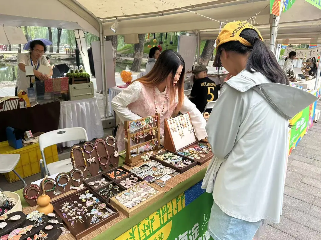 “快看,这里的织锦手链好好看,咱们买两条同款不同色的,正好做闺蜜款。”“我想买这个国风发簪,上面的花朵玲珑剔透,搭配汉服肯定特别好看。”5月31日,记者来到圆明园遗址公园,看到这里的“运河市集”人头攒动,吸引众多市民前来游览。
