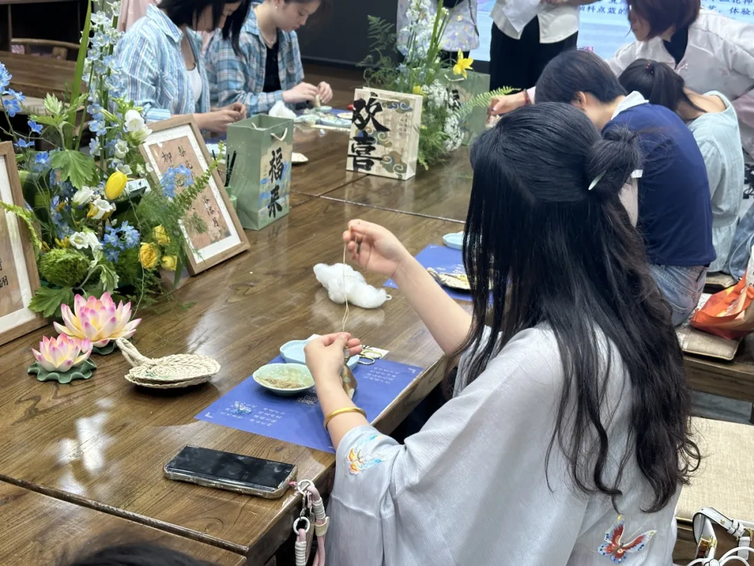 正在宋锦香囊传承人张晓莹的带领下