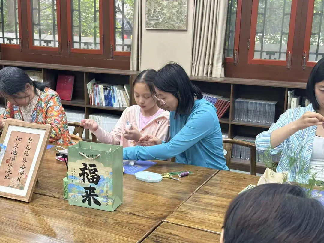 “老师,我想和妈妈一起做这个小老虎图案的香囊。”小学二年级的王梓涵一眼就看中了一块金色的宋锦,只见布料上面,一只小老虎仰着头,抬着爪子,一副神气十足的模样。“这是‘虎镇五毒’纹样,是宋锦里专为端午设计的经典。”张晓莹一边把宋锦递给她,一边科普着图案的知识,“老虎是威猛的象征,能够驱邪避害,于是,古人设计了‘虎镇五毒’的纹样——这不仅仅是一种驱邪的方式,更是对平安生活的祈愿和向往。”