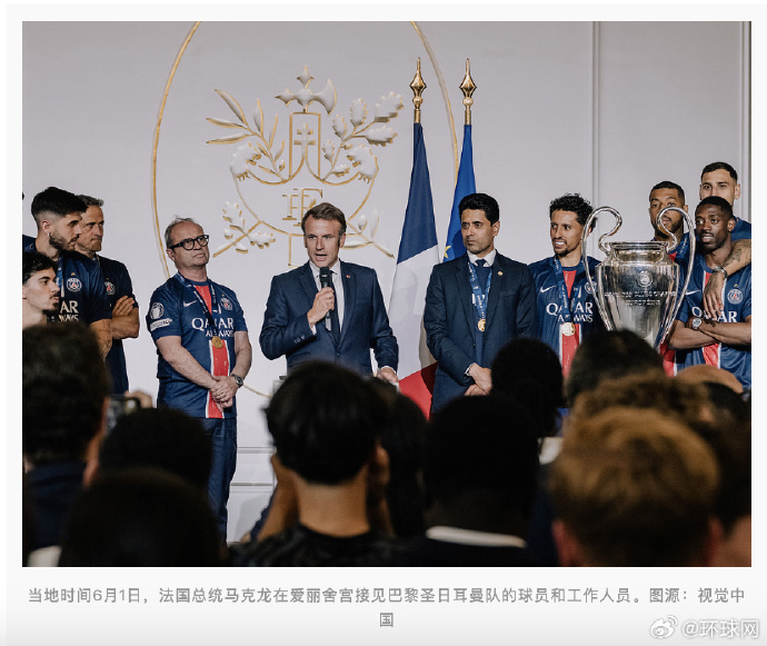 马克龙当天还祝贺“大巴黎”击败国际米兰取得辉煌胜利,“你们将巴黎推向欧洲之巅,场上11名球员背后还有‘第十二人’——全体法国民众”。