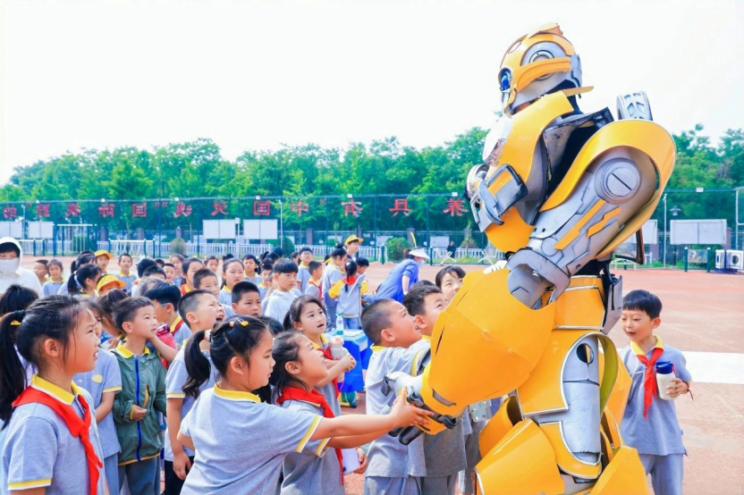 近三米高的“擎天柱”向孩子们伸出机械手臂击掌,灵动的宇树机器狗轻盈地完成后空翻引发阵阵惊呼……5月30日,北京实验学校顺义学校的操场瞬间化为未来科技的奇妙入口,一场以“童趣探索 智创未来”为主题的科技嘉年华活动火热启幕。活动通过三大主题区域、二十余项科技体验项目,在孩子们心中播撒科学的种子,献上别具一格的儿童节礼物。