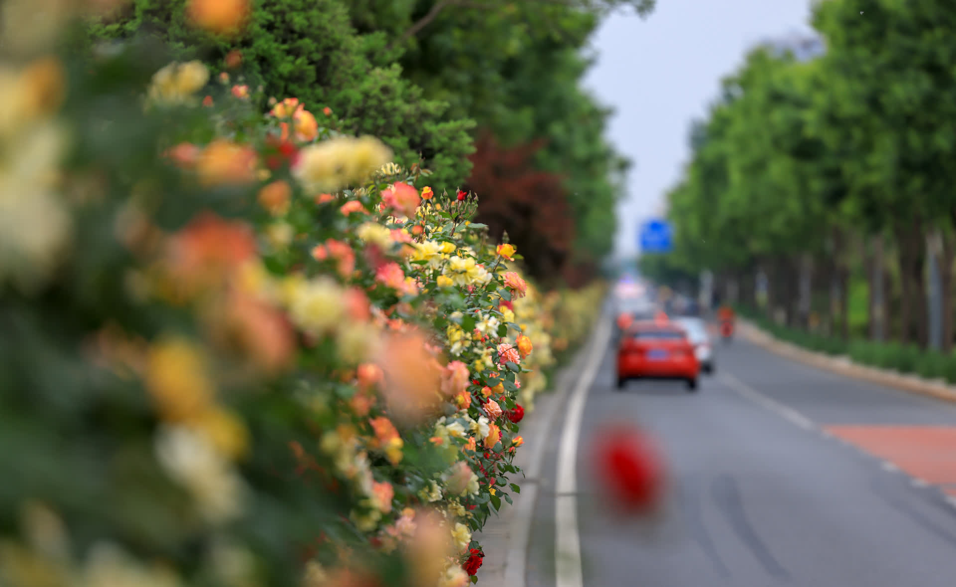 出了家门,抬脚不过几分钟就能徜徉在绿意盎然的口袋公园,还有小河流淌,白鹅追逐,野鸭嬉戏。驾车行驶在环路上,窗外,沿路怒放的月季花争相映入眼帘,白的洁净、红的娇媚、粉的浪漫,像戴在姑娘脖颈上的项链。连那些不打眼的“金角银边”——桥下、道路转角等过去想象中“灰头土脸”的空间,也被莫奈花园般的芬芳填满。