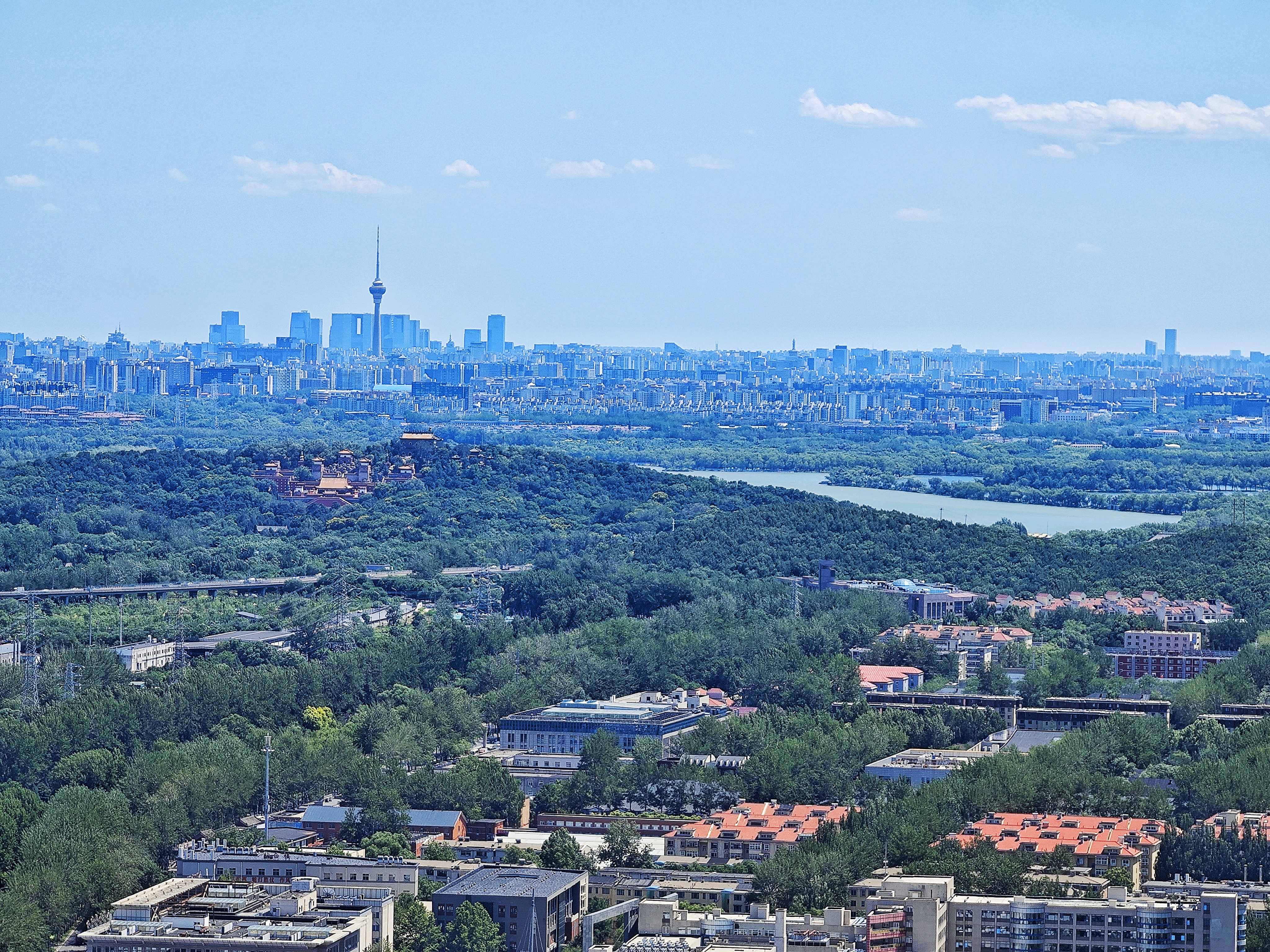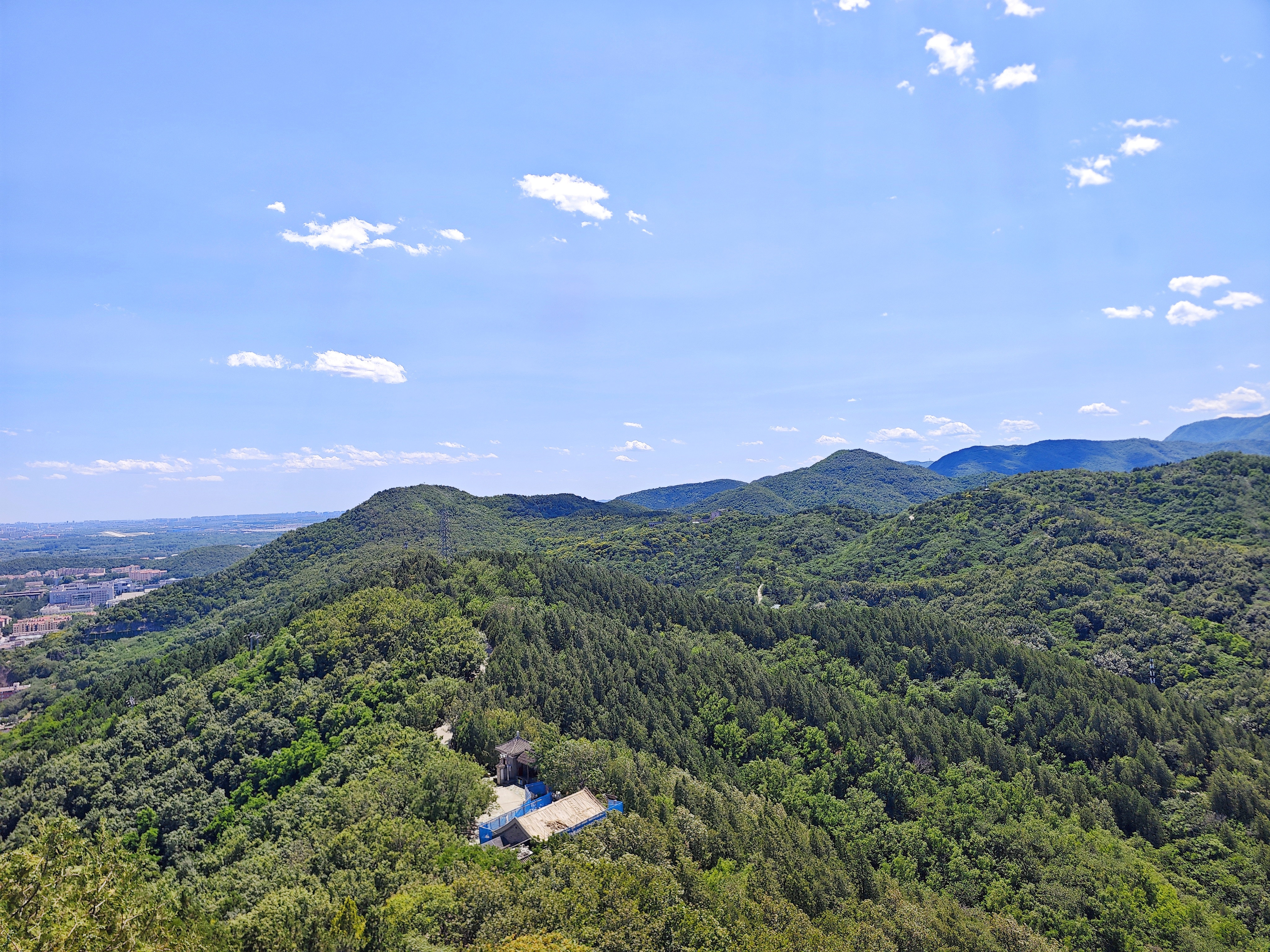 6月3日,北京迎来了通透的蓝天。朵朵白云如棉花糖般点缀在湛蓝的天幕上,为京城平添了几分童话般的浪漫色彩。在这样美好的日子里,百望山森林公园成为了市民远离喧嚣的理想去处。