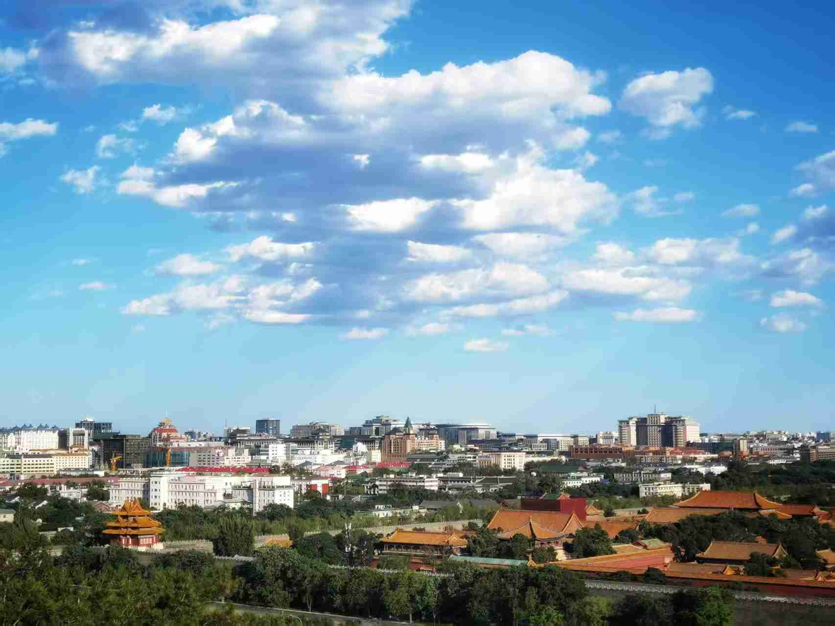 景山公园最高处即是中轴之巅,站在这里看北京美景一览无余。