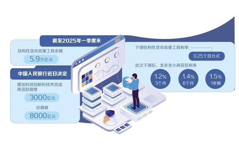 “在经济转向高质量发展阶段后,我国货币政策开始坚持总量与结构并重的调控思路,持续创设了多项结构性货币政策工具支持重大战略、重点领域和薄弱环节。”国家金融与发展实验室特聘高级研究员庞溟表示,截至2025年一季度末,结构性货币政策工具余额5.9万亿元,是央行重要的基础货币投放渠道。