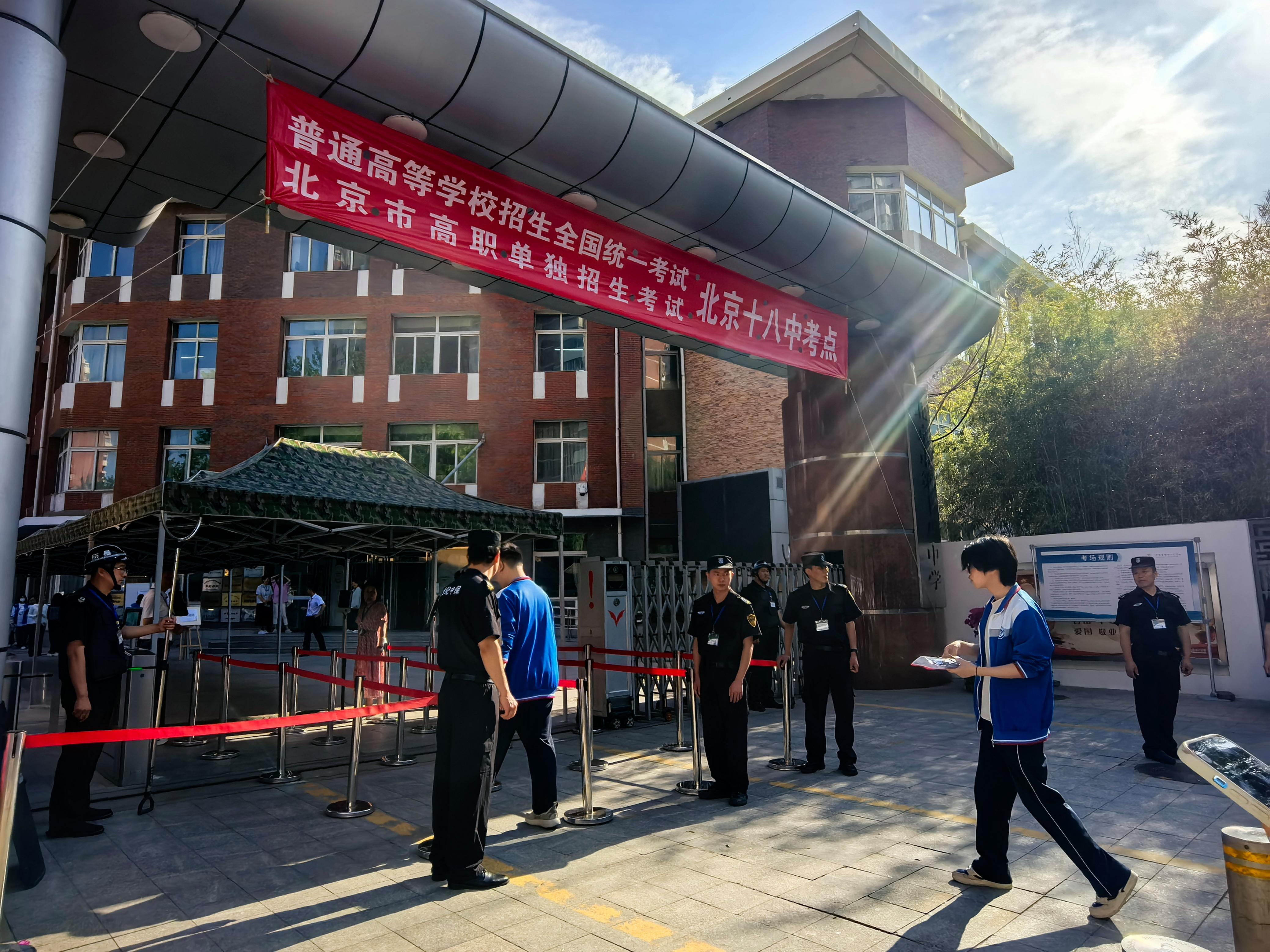 6 月 7 日上午,全国瞩目的高考正式拉开帷幕,北京市第十八中学考点现场秩序井然,各方力量全力保障,为考生们营造了安心、舒适的考试环境。