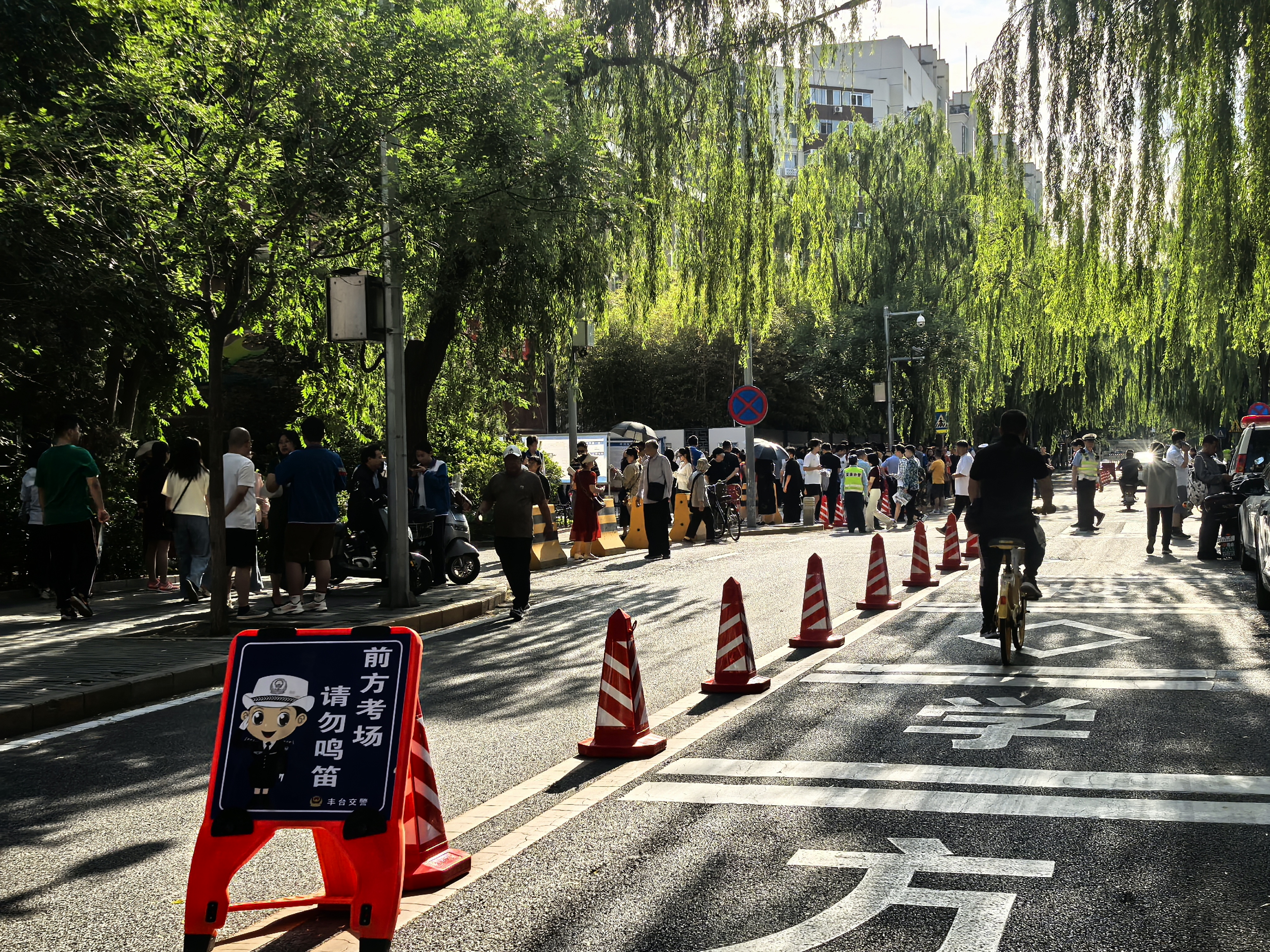 清晨7点多,考点外已陆续有考生抵达,考点周边的保障工作也有条不紊地进行着,由于十八中考场门前的群星路(热公馆至方庄路路段)在考试时间段内实施封闭管理,交警们在考点附近的主要路口指挥交通,确保道路畅通,仅允许考生及家长通行,机动车禁止驶入。