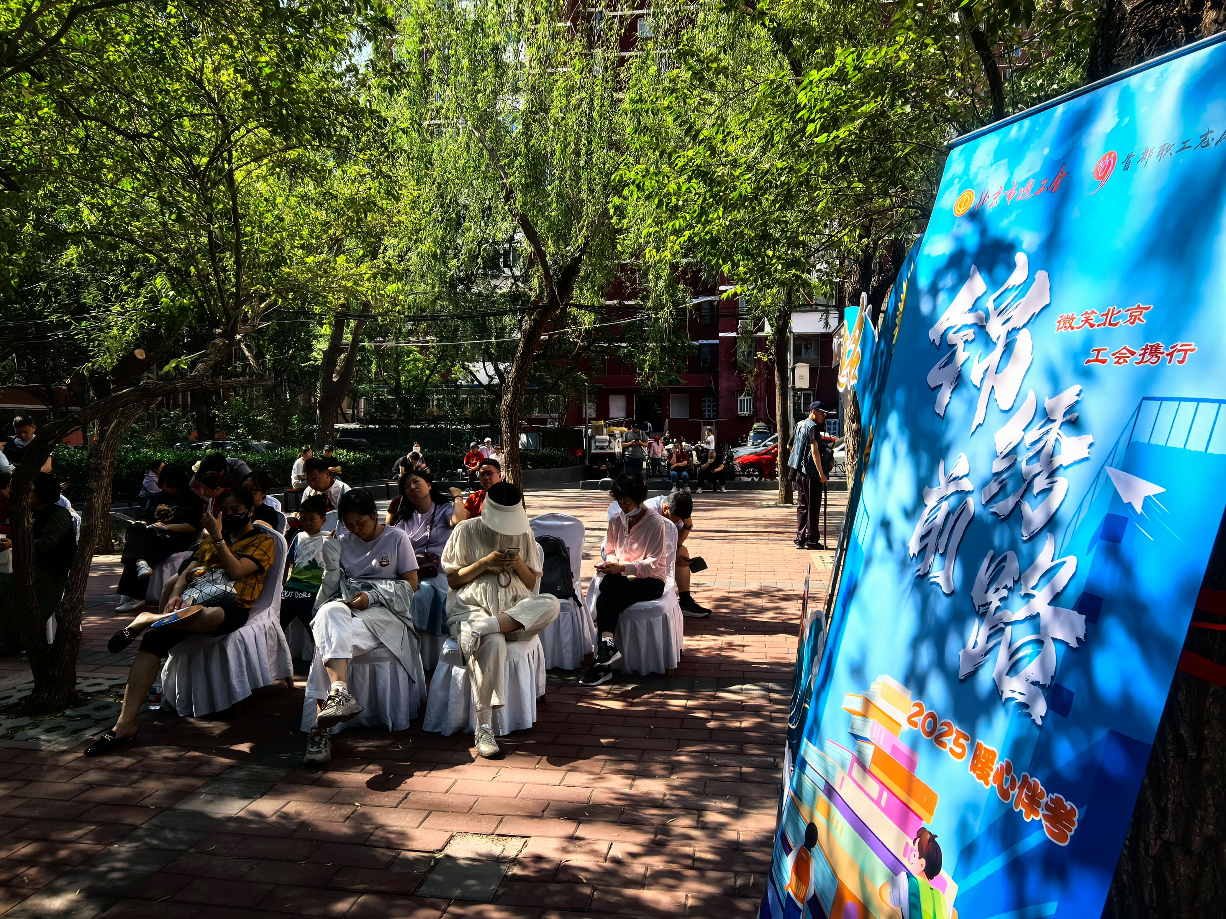 与此同时,方庄街道工作人员也为考生和家长们提供了各种暖心服务,在芳星园三区设立了高考伴读点,配备舒适休息设施、饮用水,还准备了寓意“一举夺魁”的向日葵泥塑材料,供陪考家长休憩。“孩子考试,我们在外面也紧张,天气很热,有个地方能休息等待,还有暖心的服务,我们心里也踏实。”正在陪考的祝阿姨说道。