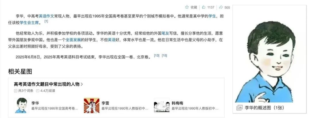 1995年,李华首次现身高考英文作文中,他邀请来自英国的Peter去人民公园野餐。
