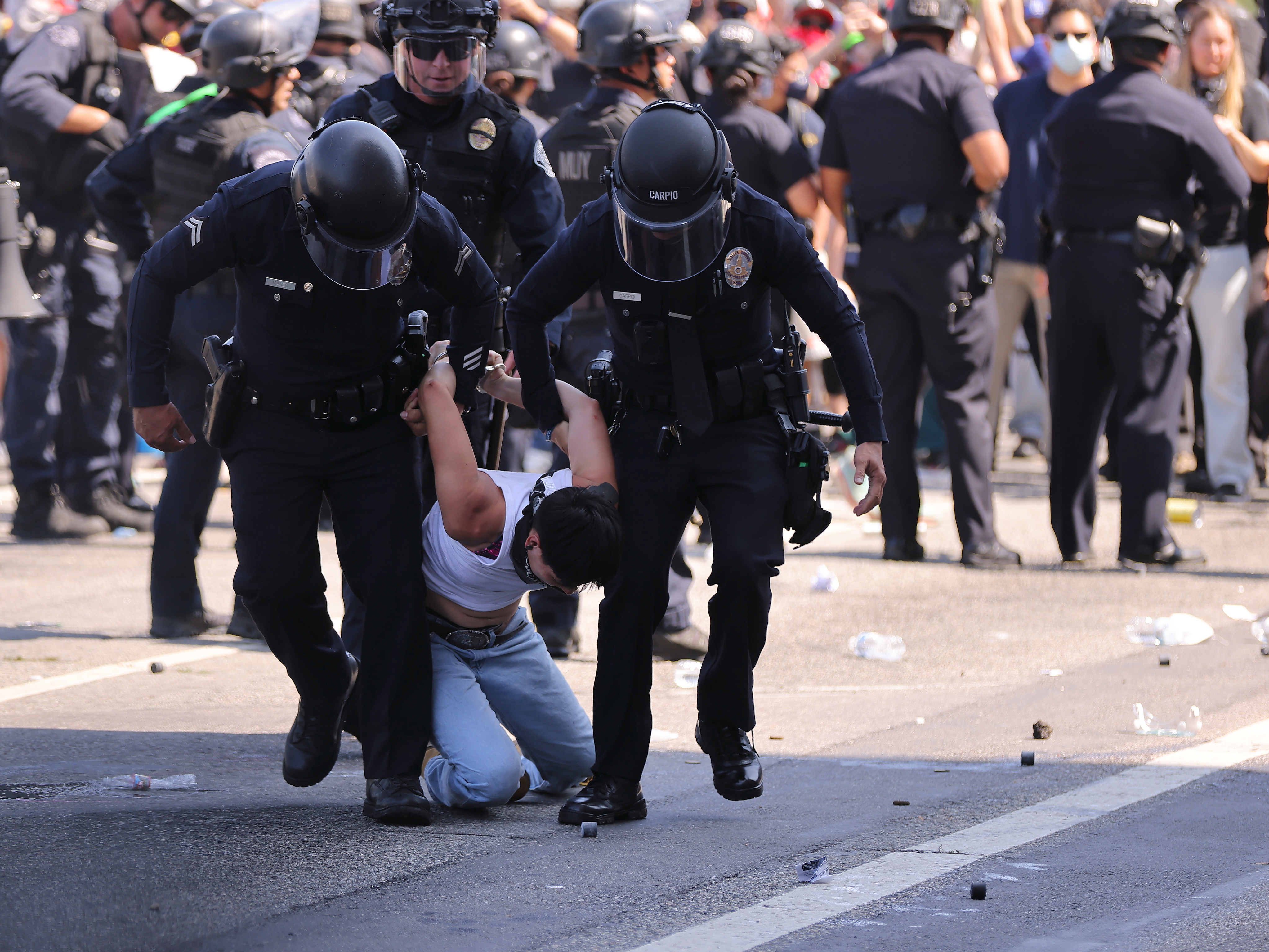 洛杉矶警方9日发布的最新消息说,在自7日开始的洛杉矶大规模抗议活动中,警方已逮捕近70人。