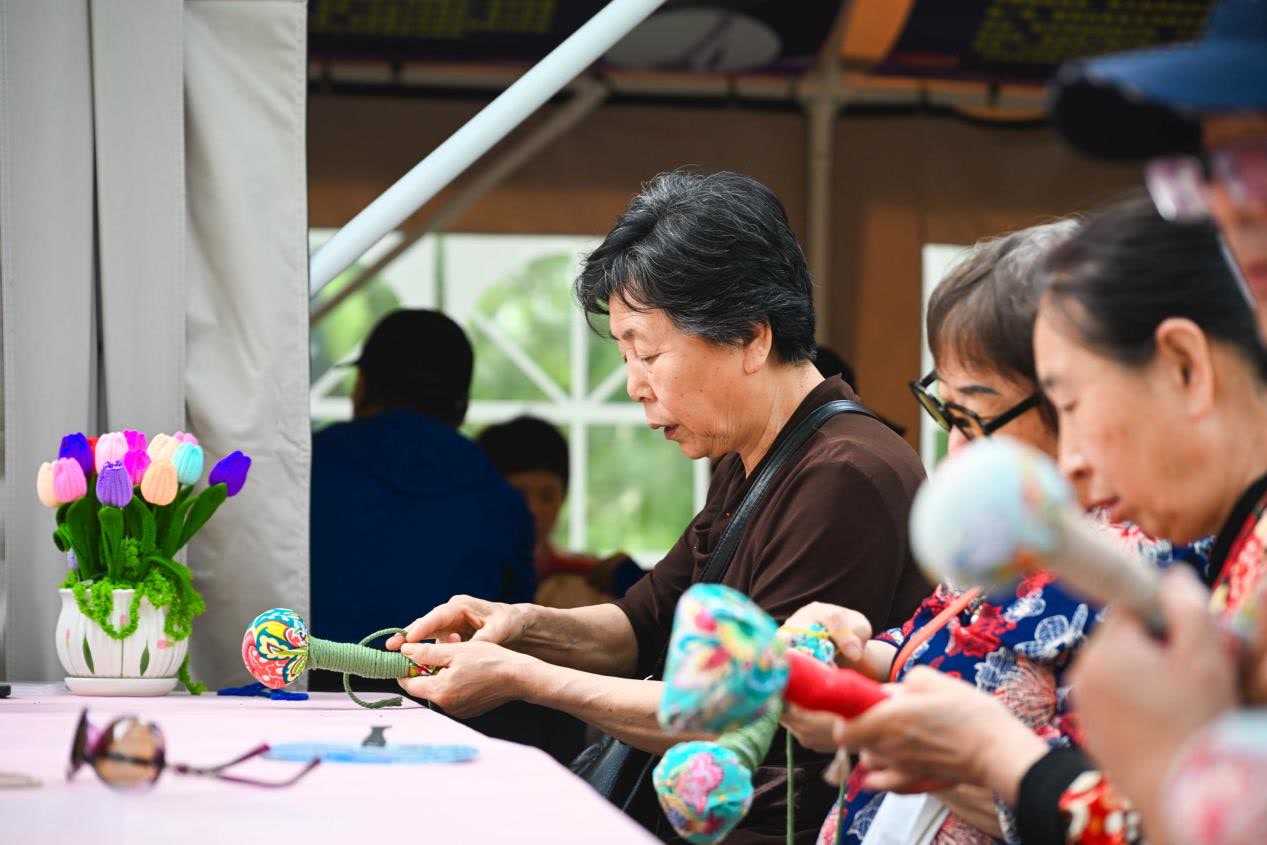 活动巧妙融合仲夏民俗文化、安定镇御林古桑传说及非遗文创产品展示,为退休人员打造了集文化学习、桑椹采摘、手工制作于一体的沉浸式体验。