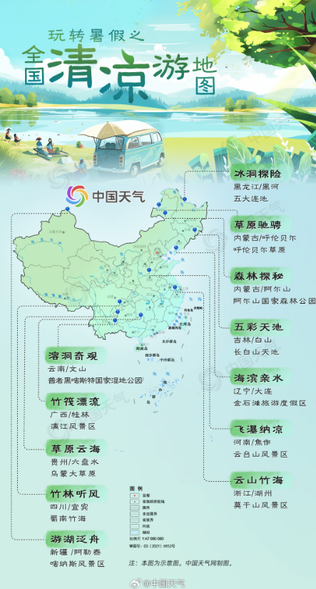 @中国天气推出全国清凉游地图,看炎炎夏日在哪里可以觅清凉。