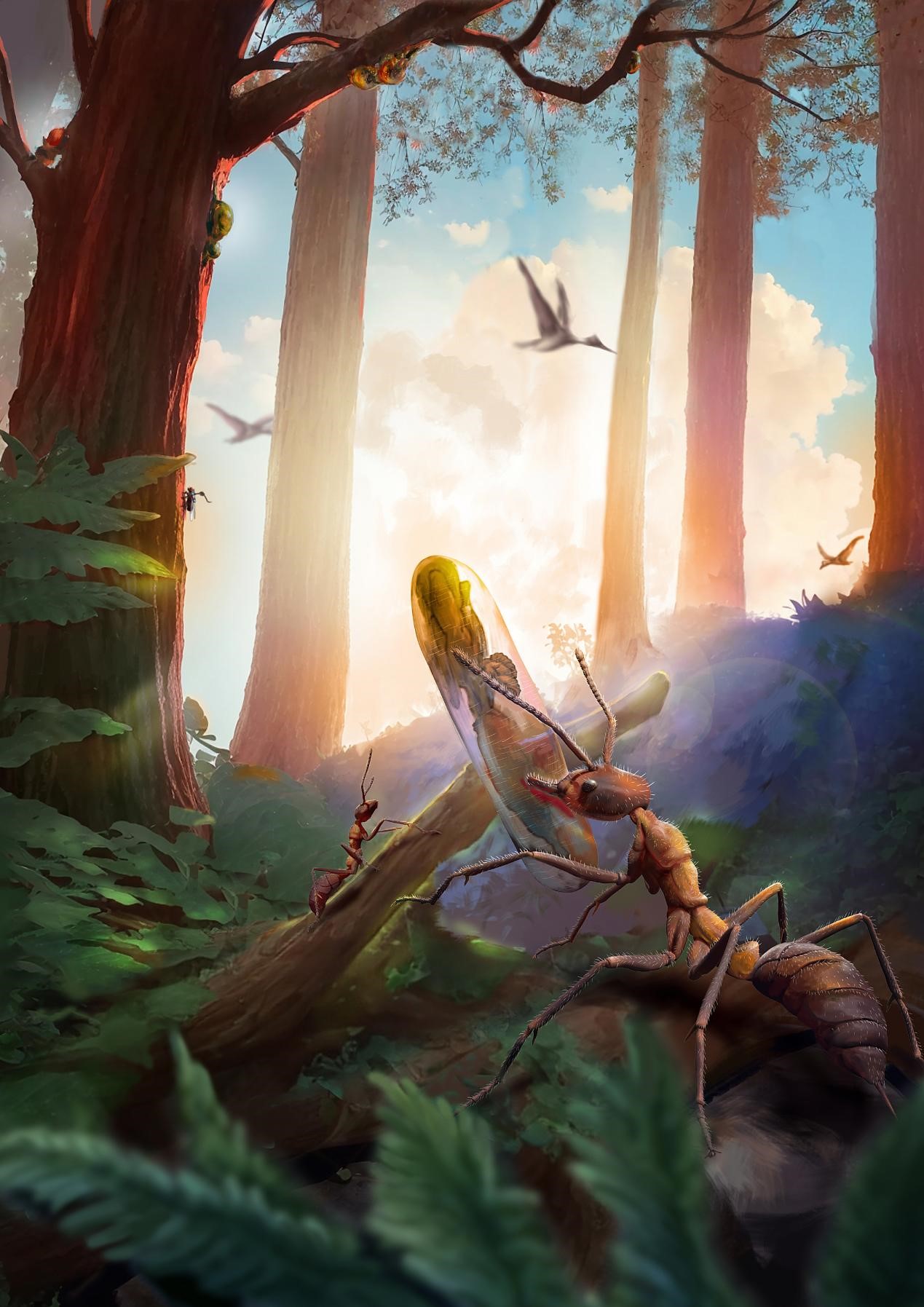 领导此项研究的中国科学院南京地质古生物研究所研究员王博介绍,线虫草是一类寄生性真菌的统称。我国的名贵中药材“冬虫夏草”就是线虫草家族的一员,其学名为“中华线虫草”。冬天,真菌孢子侵入一种昆虫幼虫体内,吸收营养长成菌丝体,幼虫就成了“冬虫”;夏天,菌体从虫体钻出,长出棒状的繁殖结构子实体,看起来像草,故名“夏草”。整个线虫草家族有300多种成员。它们本领高强,能寄生在蚂蚁、苍蝇、甲虫、蜘蛛等多种节肢动物身上,形成各种各样的“虫草”,堪称自然界中的“傀儡操控大师”。不过,由于真菌因缺乏硬质结构、极易腐烂,线虫草的化石证据一直很少,人们对它们的起源与演化也知之甚少。