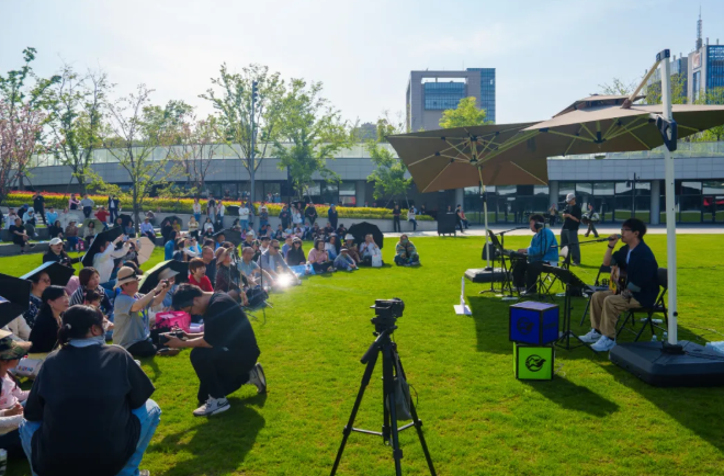 在“鹿鸣岛银泰inPARK”,一场小型音乐会正在草坪上举行。刘芸 摄