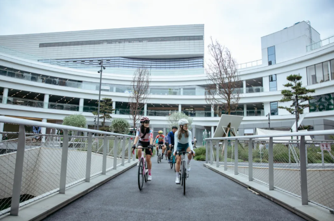 “此地CyPARK”为半开放式空间,骑行爱好者可以顺着动线,以不超10公里的时速骑行。为保障安全,保安人员会巡逻检查,制止超速行为。