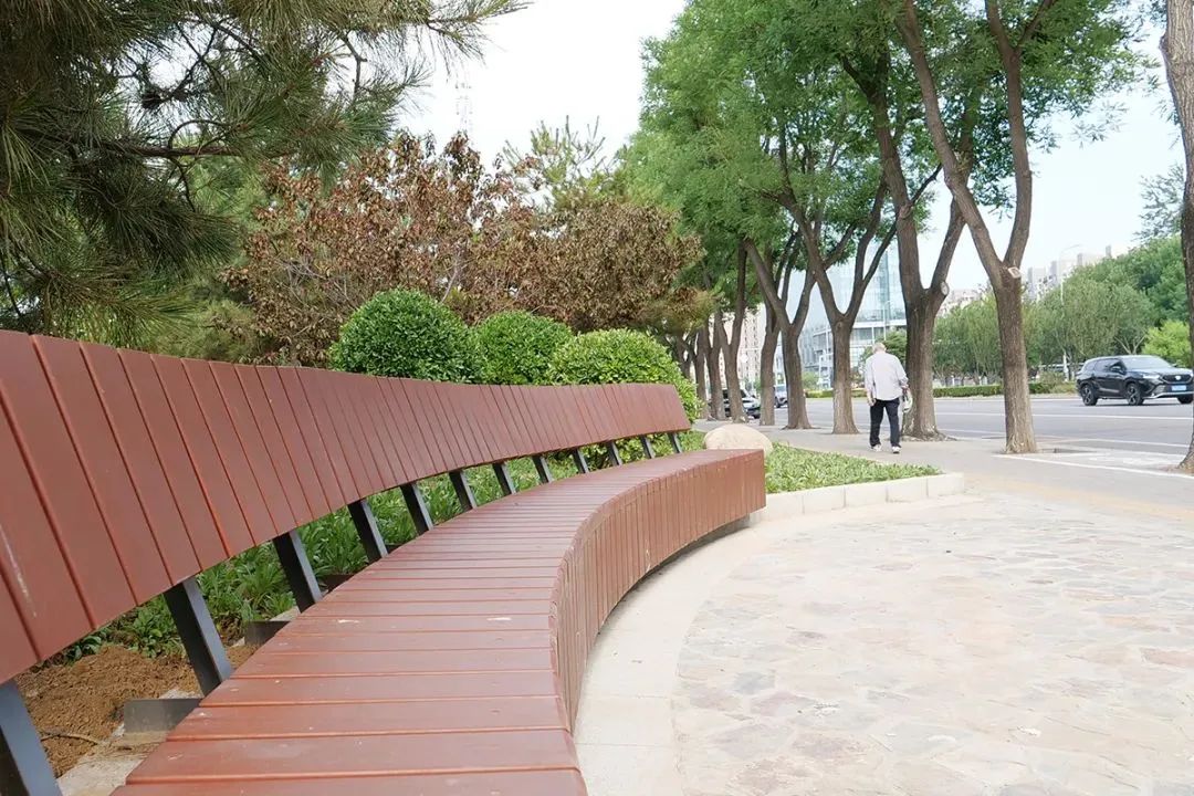 记者在城南体育中心东侧的顺康路看到,曾经封闭的边界被打通,栽种了多种绿植,安装了休闲座椅,居民通行更加顺畅。错落有致的绿植与平坦整洁的步道相得益彰,共同勾勒出花园式的街道空间。